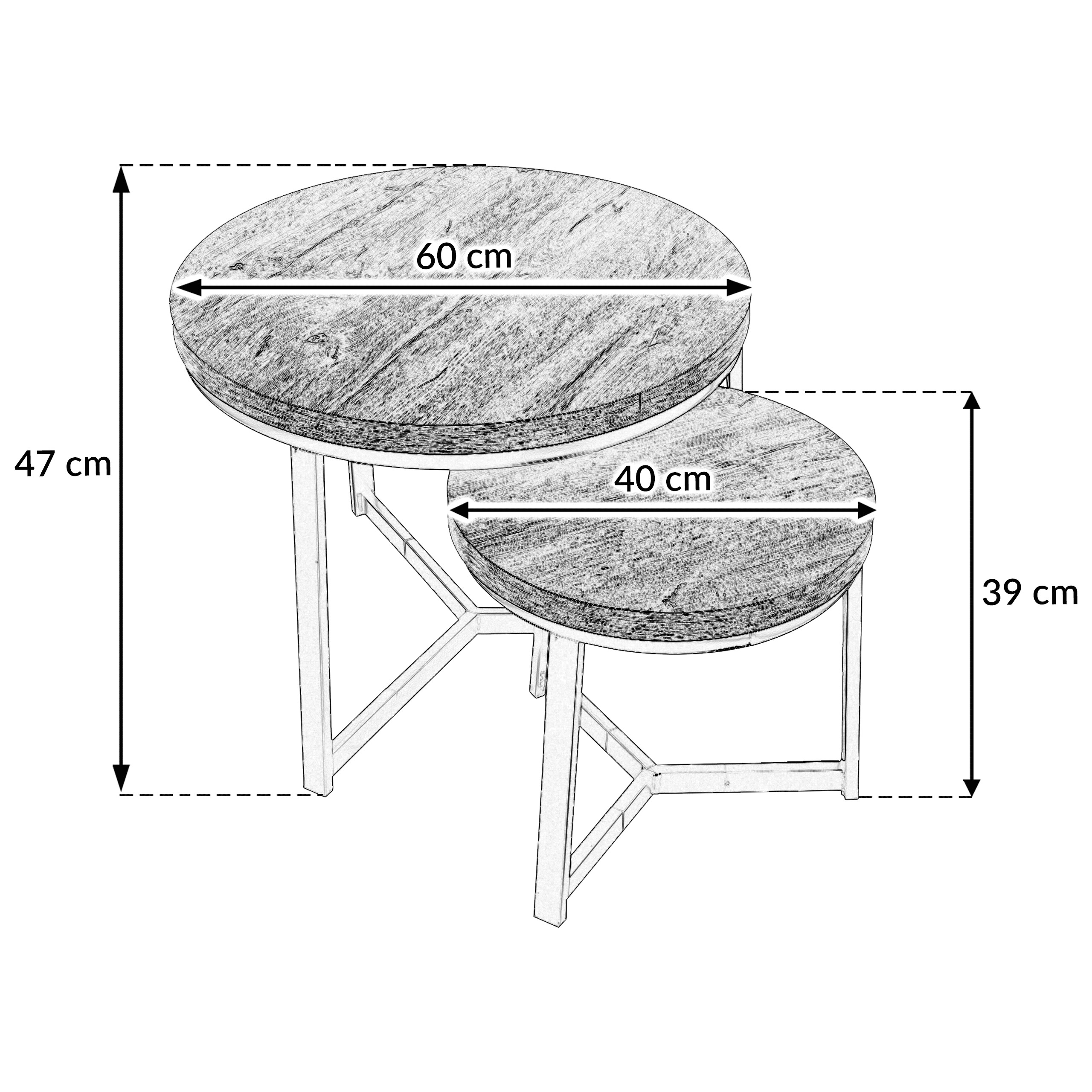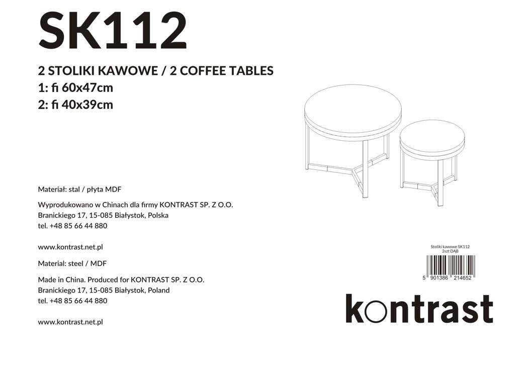 Набор кофейных столиков SK112D — идеальное решение для тех, кто ценит современный дизайн и функциональность. Изготовленные из МДФ цвета дуба, эти столики станут стильным дополнением любого интерьера. Их круглая форма и различные размеры (больший столик диаметром 60 см и высотой 47 см, меньший — диаметром 40 см и высотой 39 см) позволяют располагать их по своему усмотрению — вместе или по отдельности, что открывает множество возможностей для оформления интерьера.