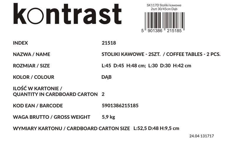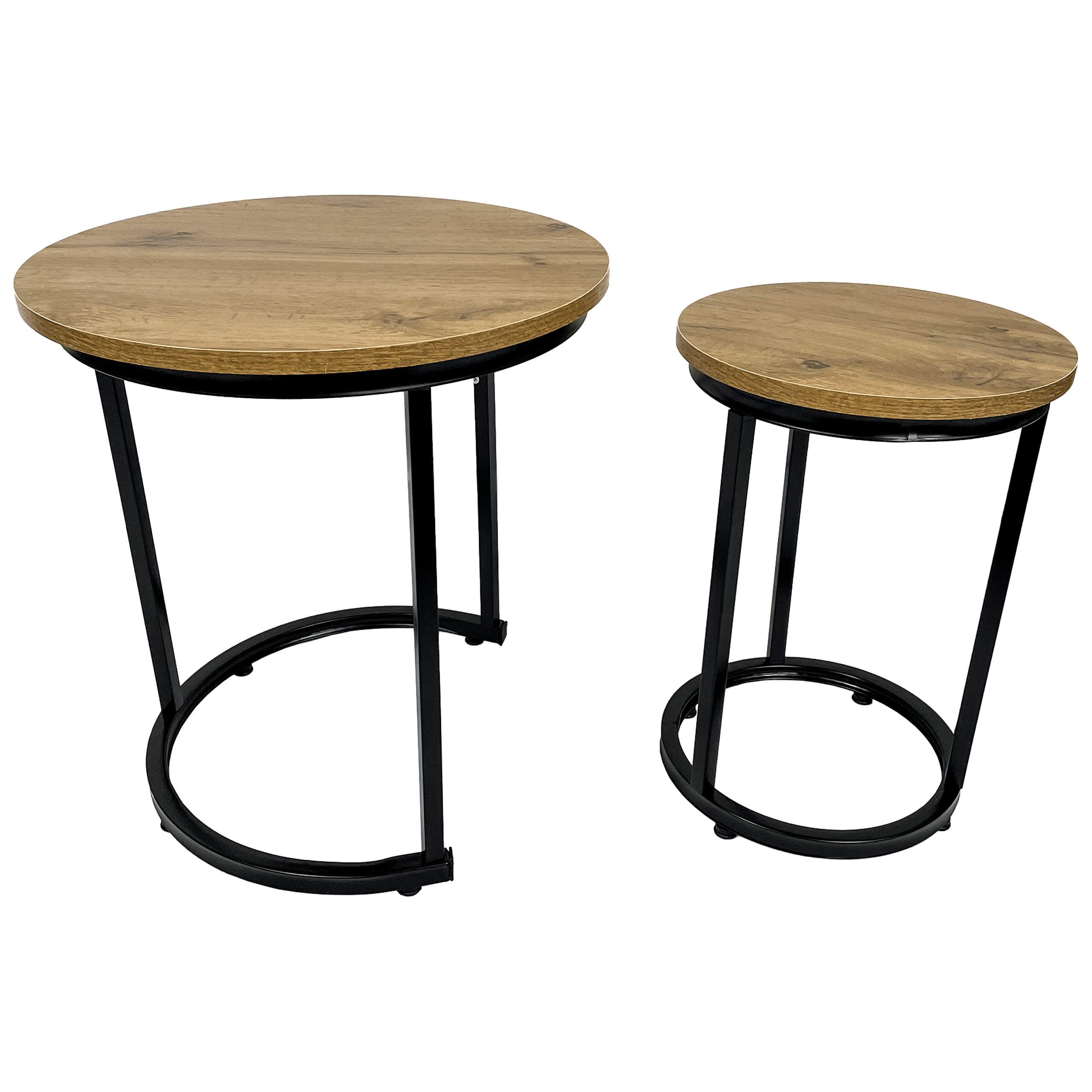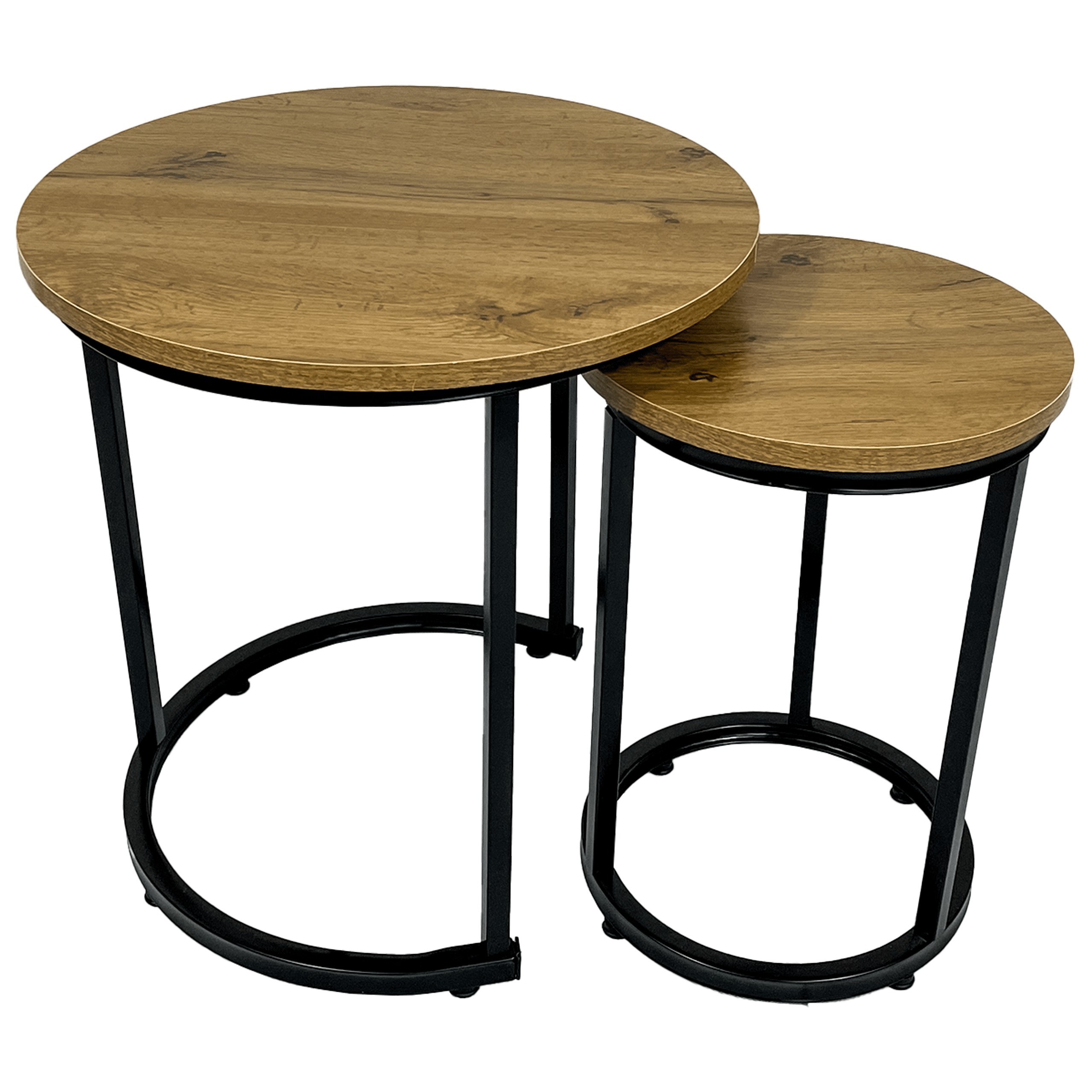 Набор из двух кофейных столиков в индустриальном стиле — это практичное и элегантное решение для любой гостиной, гостиной комнаты или спальни. Благодаря стальной раме с черным порошковым покрытием и столешнице цвета дуба эти столики не только выглядят исключительно стильно, но и отличаются прочностью и долговечностью.