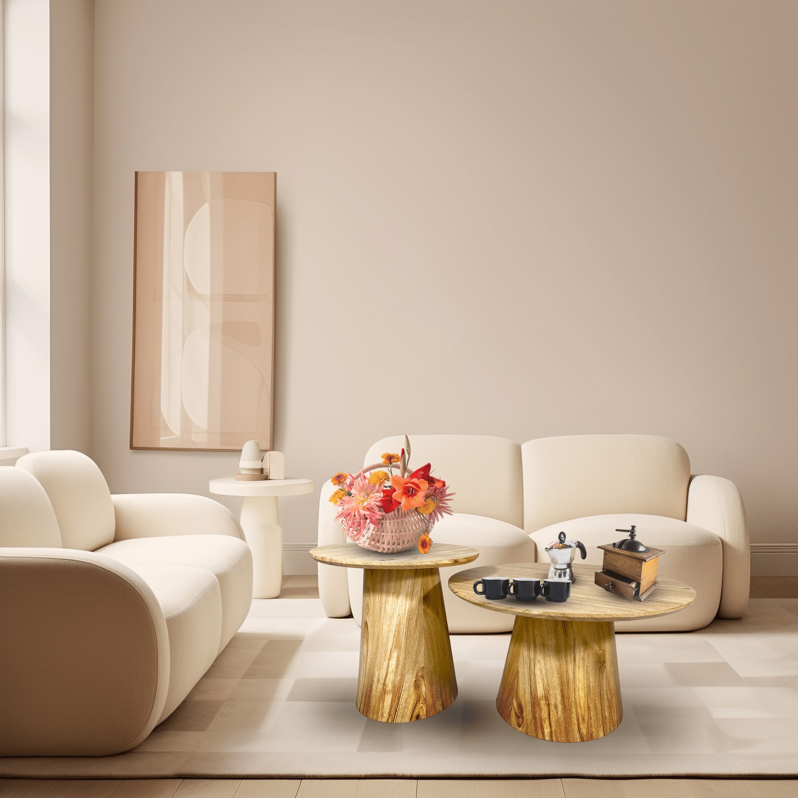 Столики обеспечивают комфорт в использовании и достаточно места для повседневных предметов, таких как чашка кофе, книга или декоративные элементы. Изготовленные из МДФ, покрытого 3D-бумагой, они отличаются высокой устойчивостью к царапинам, что гарантирует их прочность и долговечность.