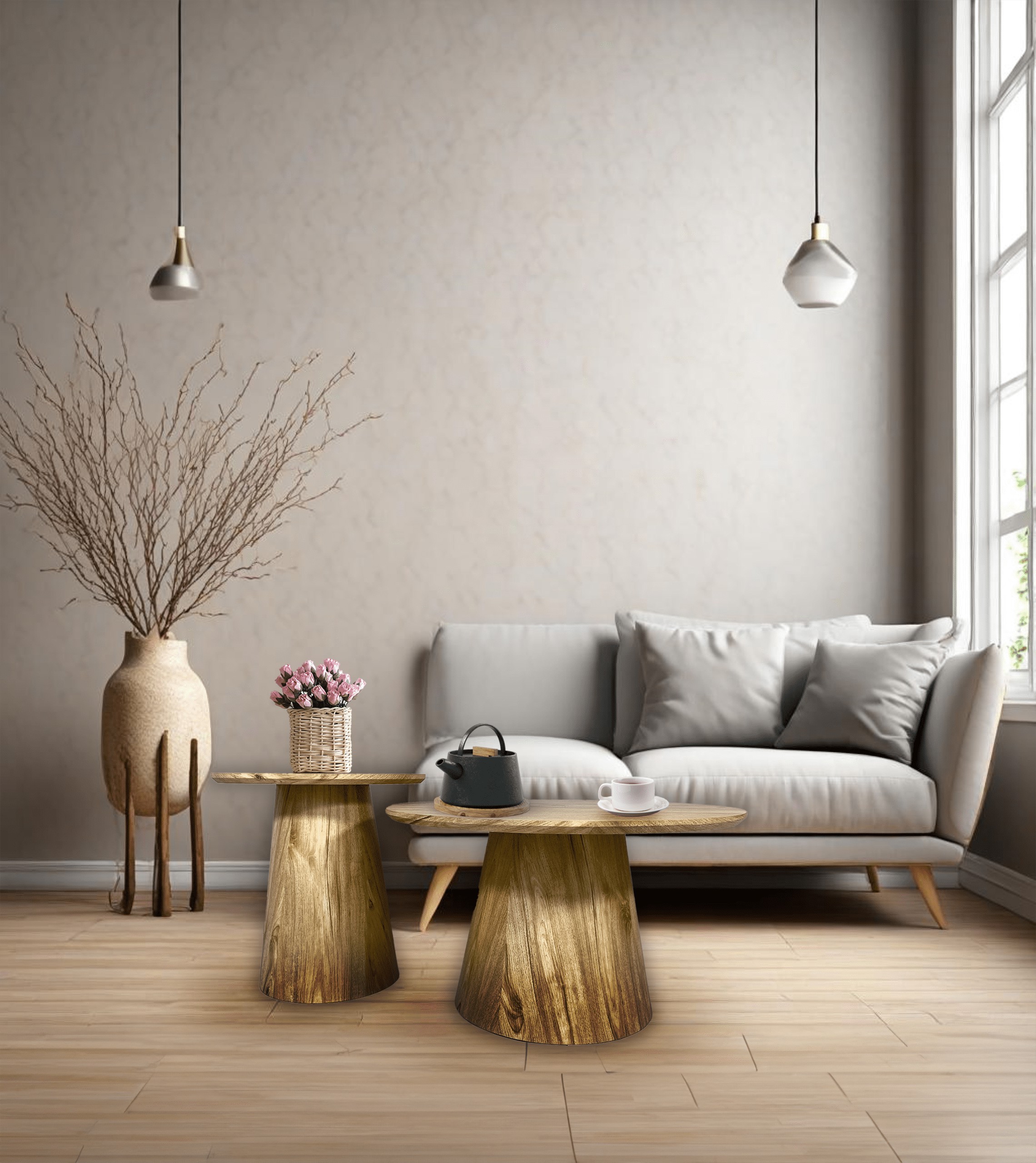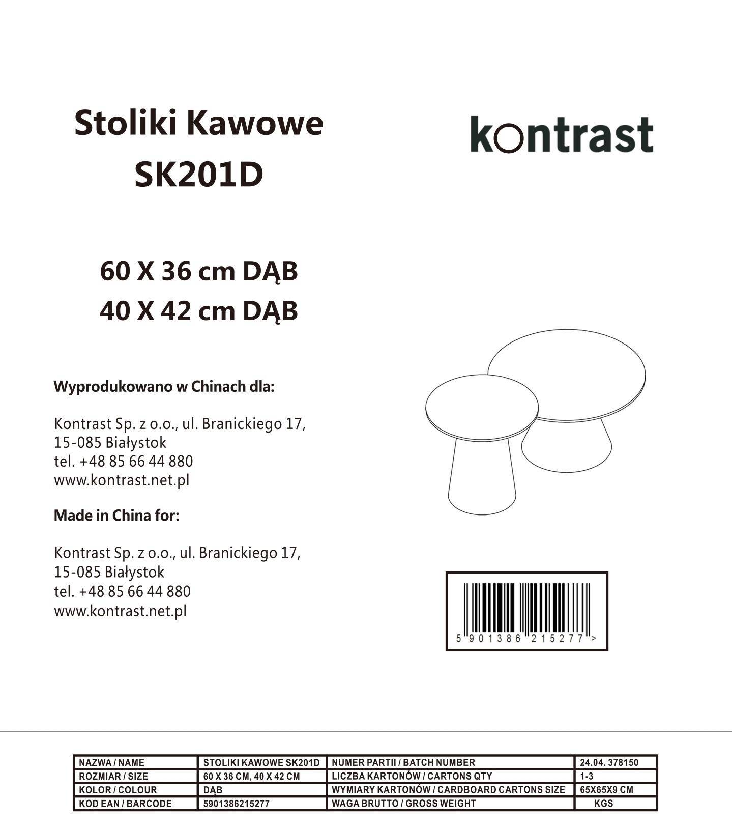 Набор кофейных столиков SK201D — это практичное решение для любого интерьера, состоящее из двух столиков разных размеров (40 см и 60 см). Они прекрасно подойдут для гостиной, гостиной комнаты или спальни, сочетая в себе функциональность и стиль. Благодаря своему исключительному и уникальному внешнему виду эти столики придадут элегантность любому помещению.