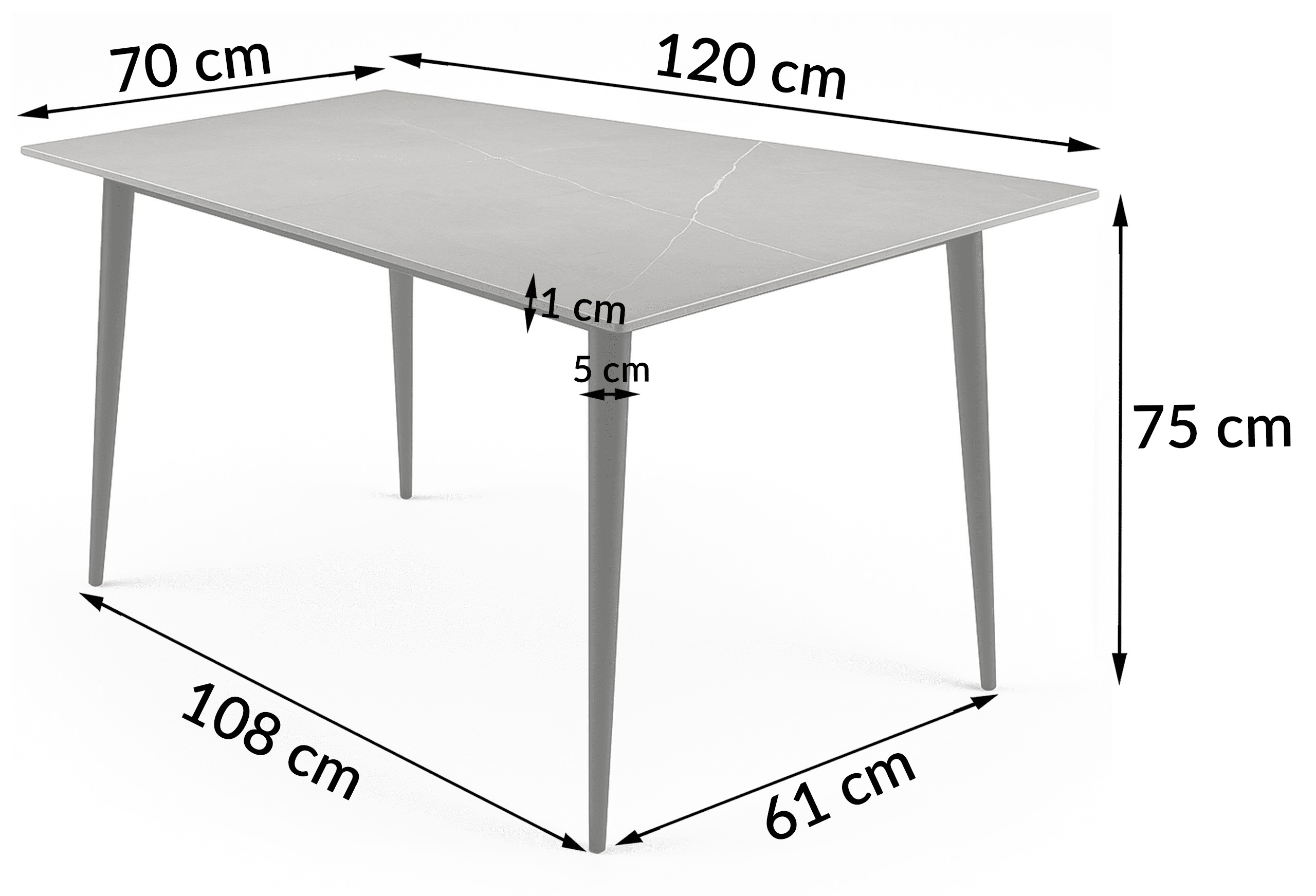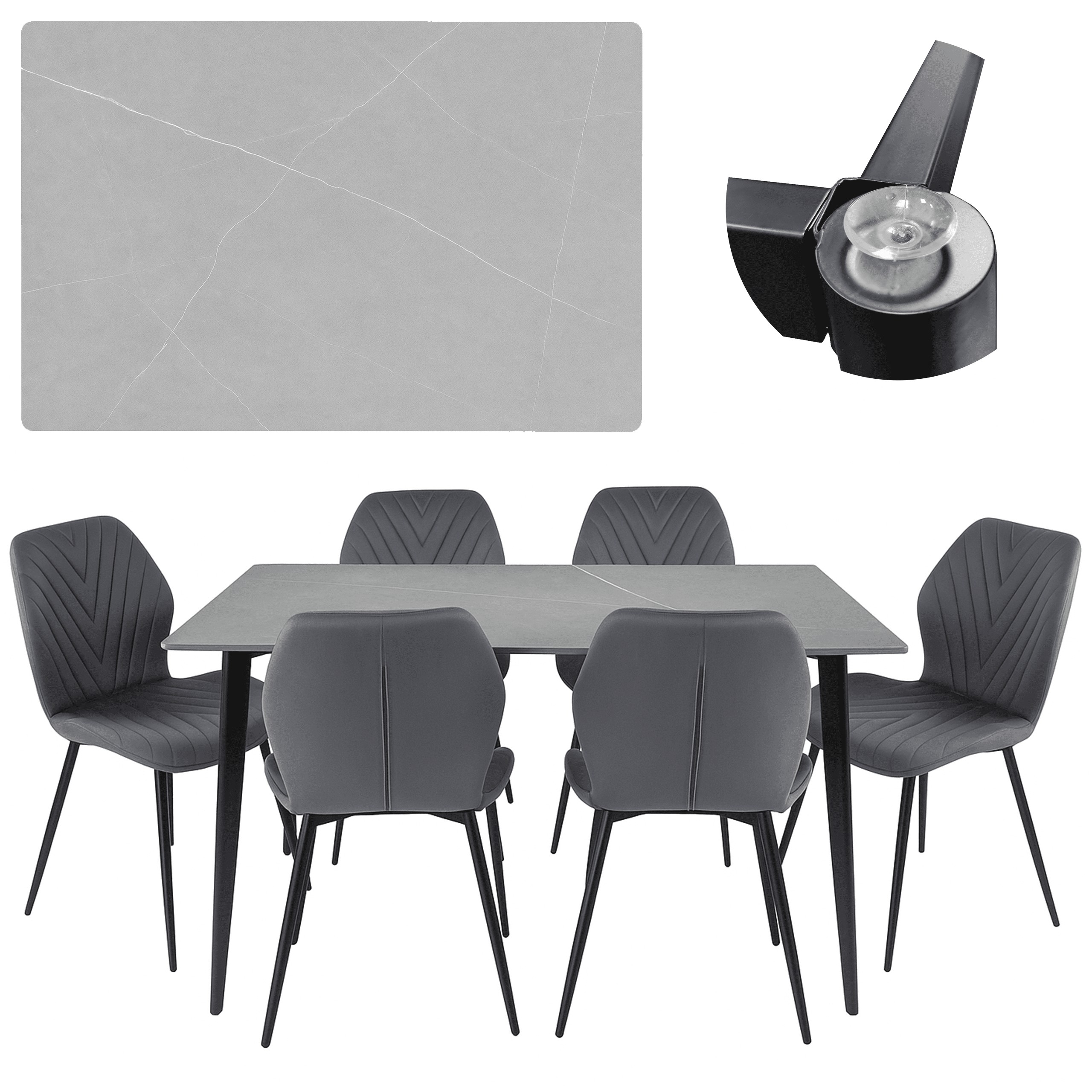 Черный стальной каркас с порошковой окраской придает всей конструкции индустриальный характер, прекрасно сочетаясь с элегантной каменной столешницей. Прочные стальные соединения укрепляют конструкцию, гарантируя прочность и устойчивость даже при интенсивном использовании. Столешница крепится на присосках, что дополнительно облегчает монтаж и транспортировку стола.
