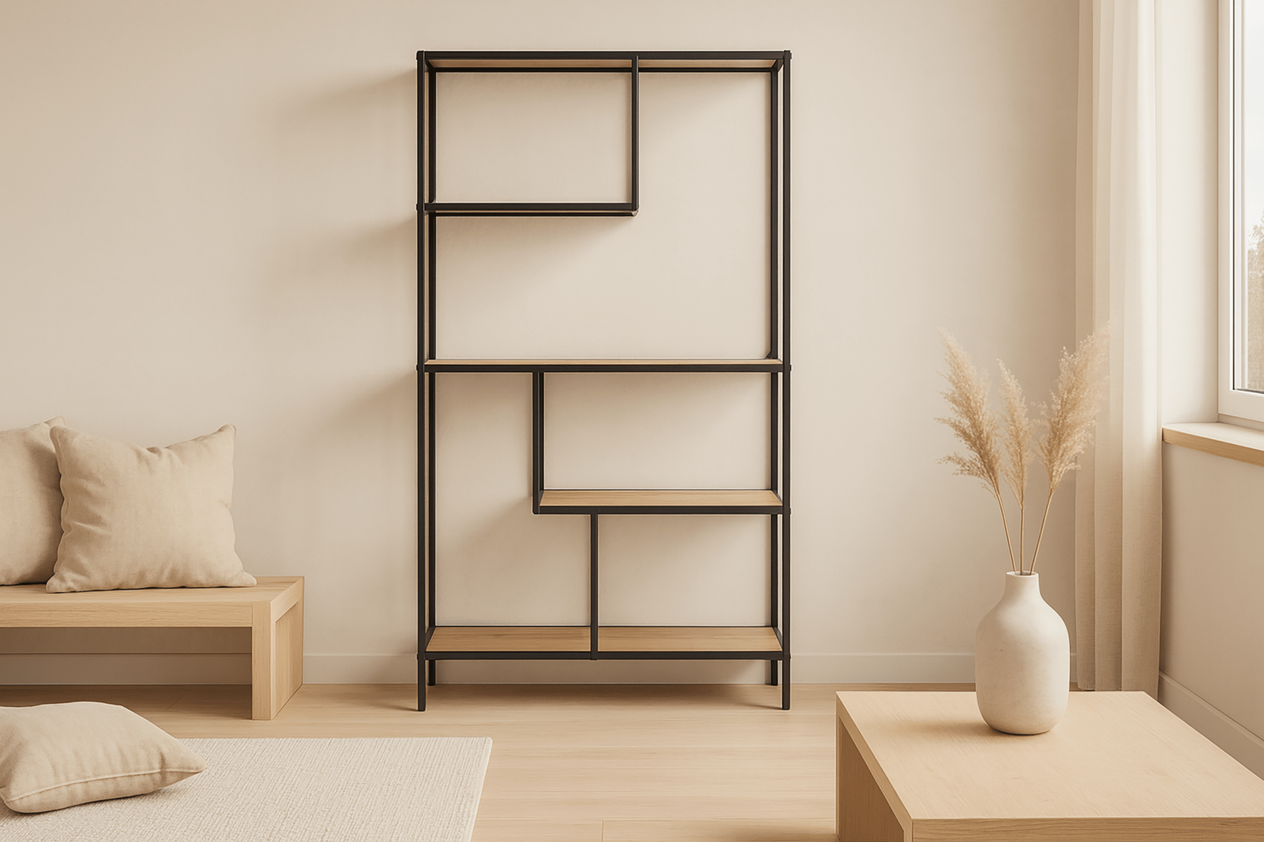 Лофт-стеллаж RL104 от бренда Kontrasto — это современный предмет мебели, сочетающий в себе элегантность дерева и прочность металла. Благодаря универсальному дизайну он идеально впишется в интерьеры в стилях лофт, индастриал, модерн и скандинавский.