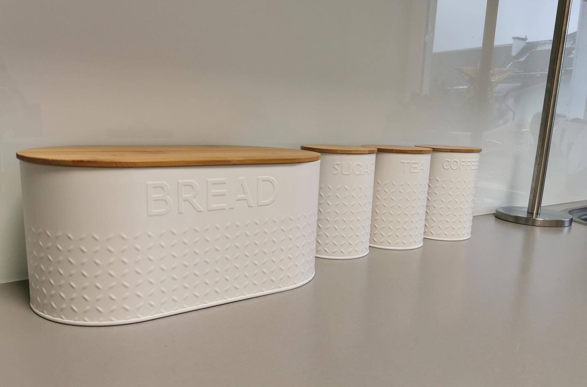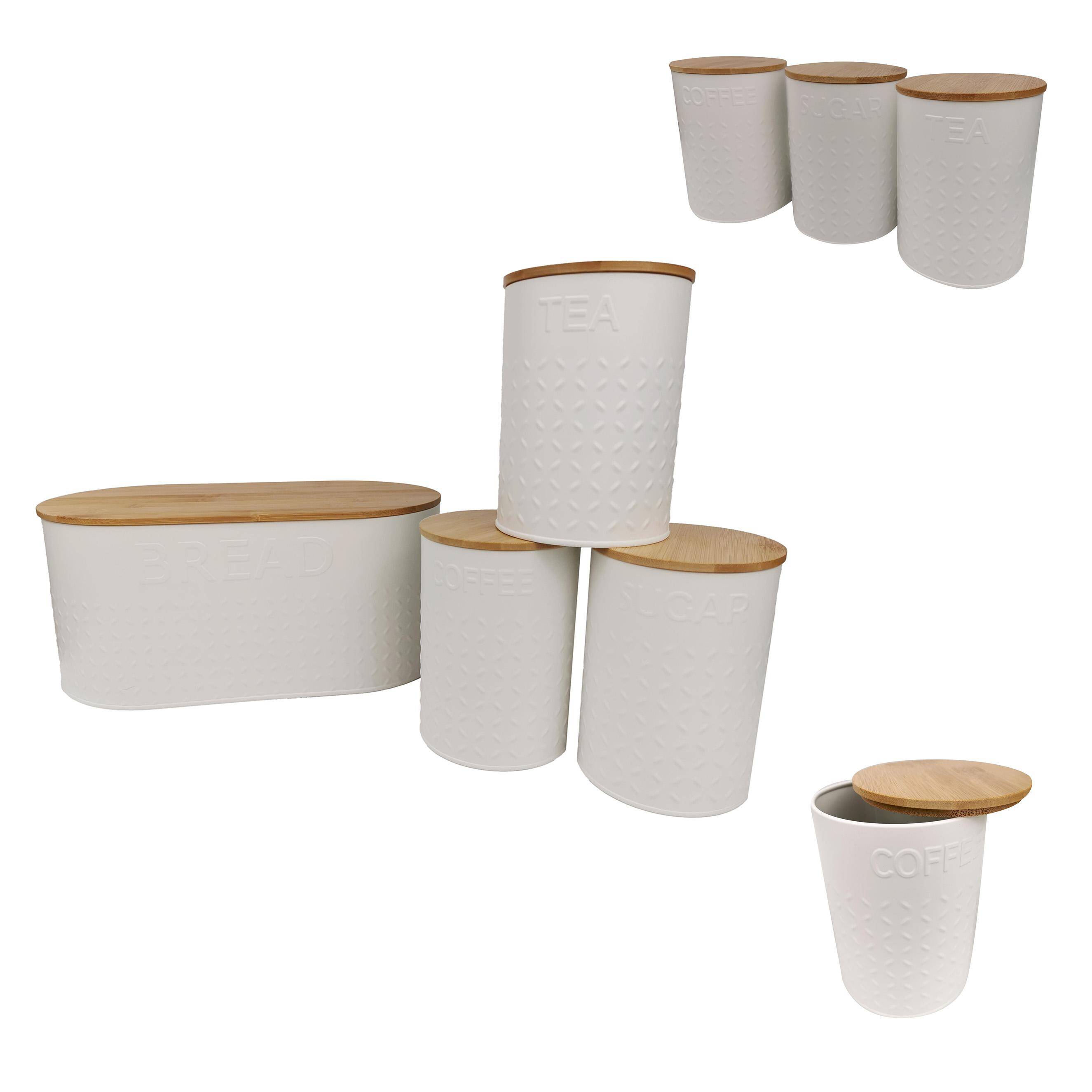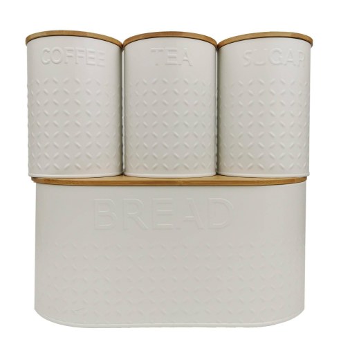 Элегантный кухонный набор WZ04 белого цвета — это сочетание стиля, функциональности и долговечности. Он состоит из практичной хлебницы и контейнеров для кофе, сахара и чая. Все элементы изготовлены из порошковой стали и бамбукового дерева, что гарантирует прочность и эстетичный вид.