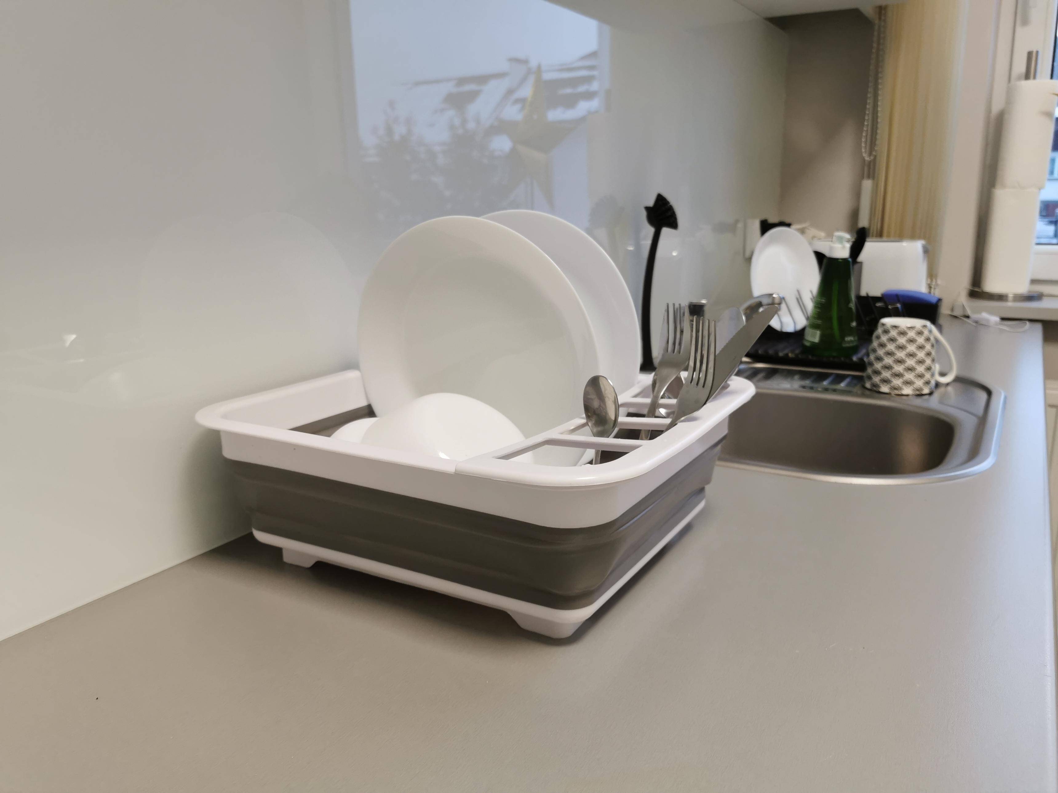 Практичная и компактная сушилка для посуды, идеально подходящая для любой кухни. Складная конструкция позволяет сэкономить место, а нескользящие ножки обеспечивают устойчивость при повседневном использовании. Также отлично подходит для поездок, кемпингов или дач.