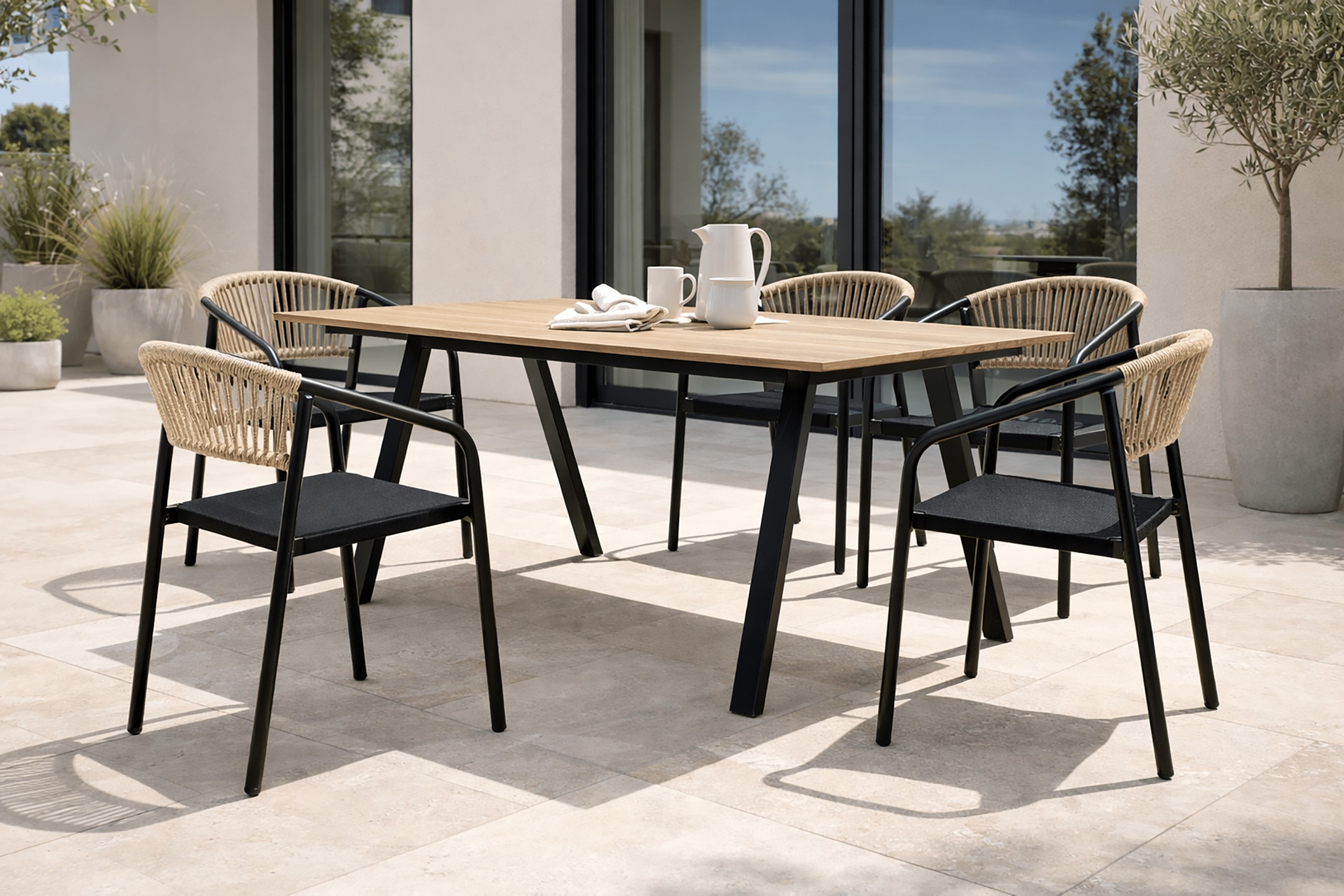 Стул Portino в черно-натуральном исполнении отлично подойдет для террасы, балкона или сада, сочетая в себе удобство использования и простоту хранения.