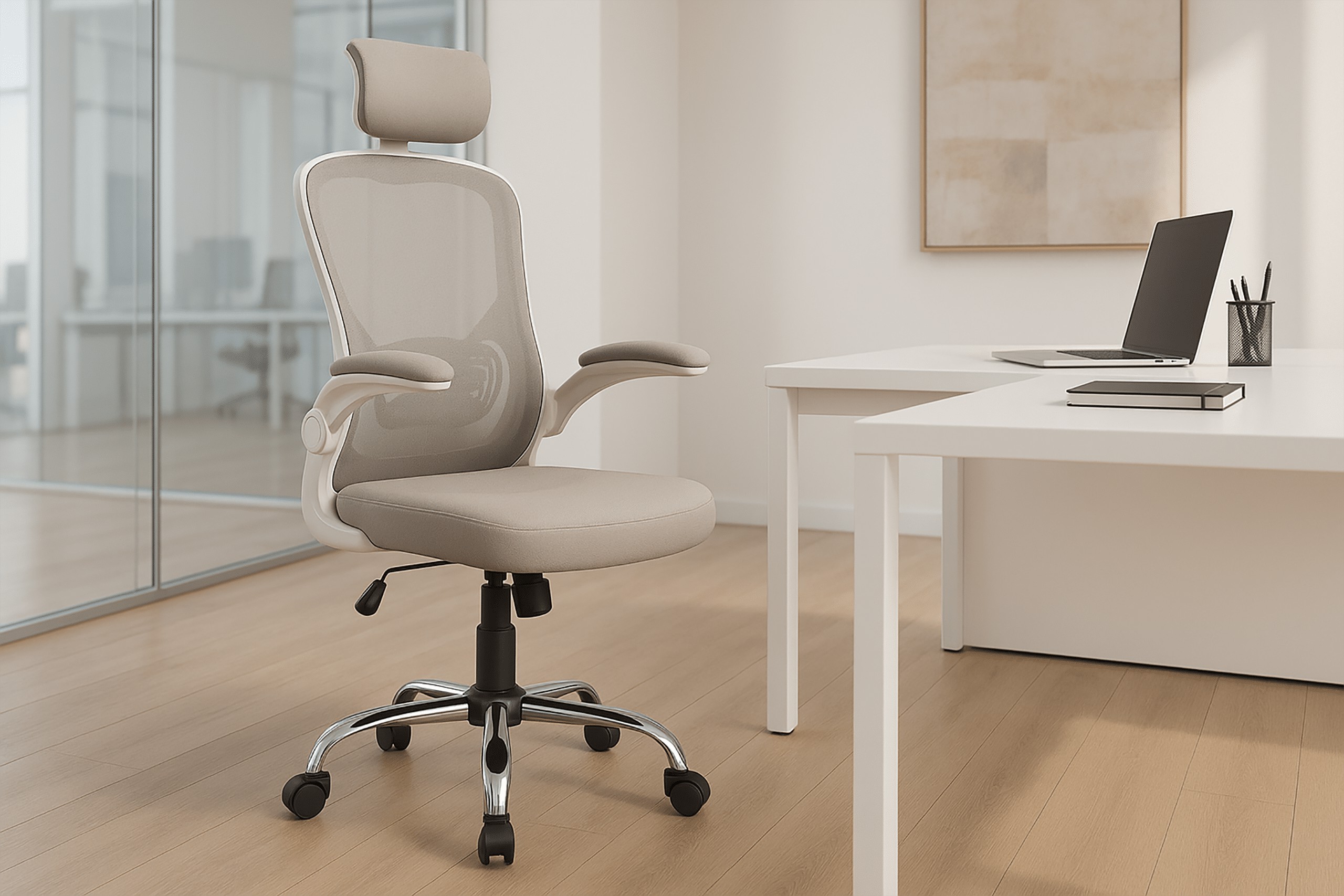 ЭРГОНОМИЧНОЕ ОФИСНОЕ КРЕСЛО KB110 СЕРО-БЕЖЕВОЕ