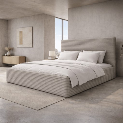 Стильная кровать Cordo LT100 сочетает в себе элегантный внешний вид и повседневную функциональность. Обивка из вельветовой ткани и практичный ящик для постельного белья делают эту модель отличным выбором как для современной, так и для классической спальни.