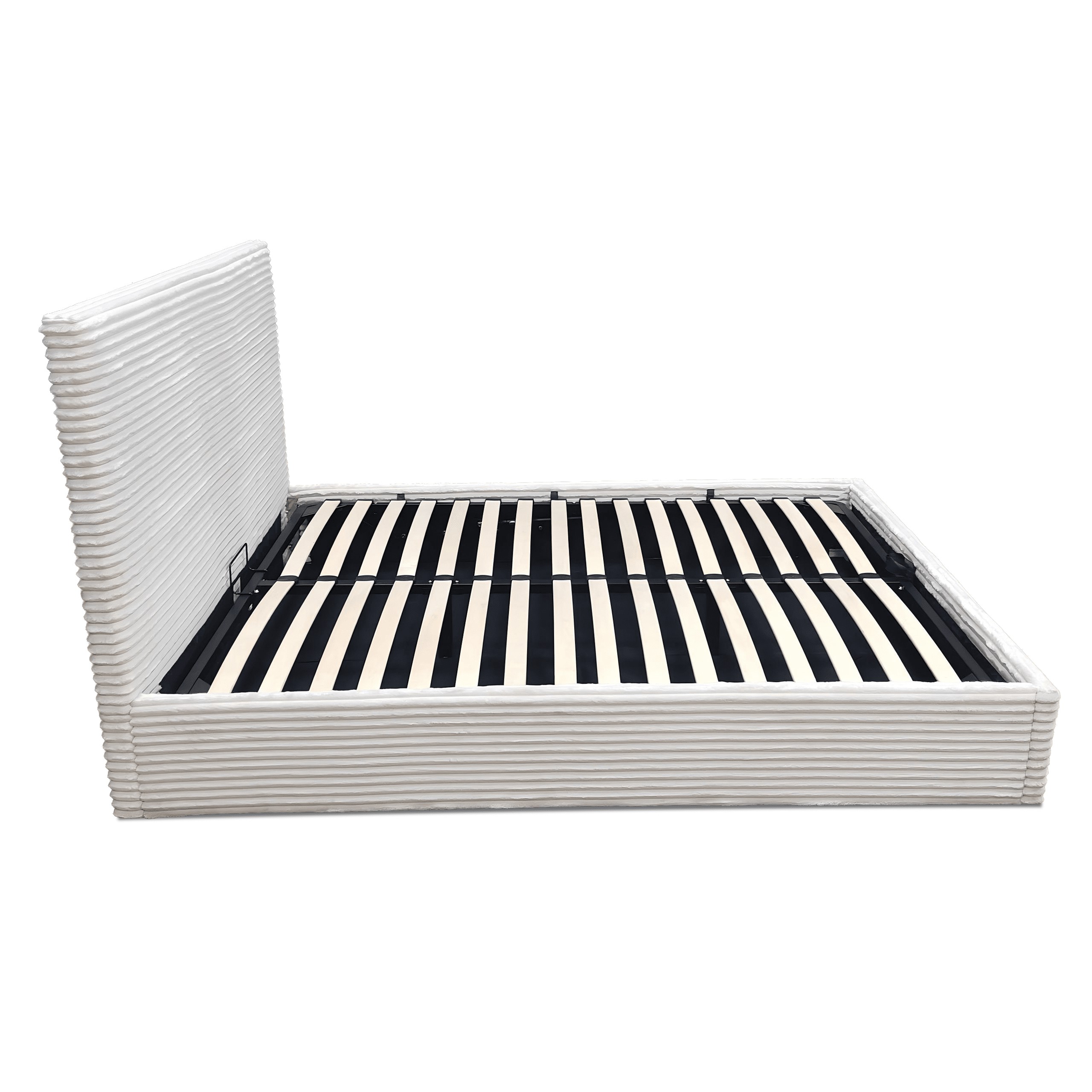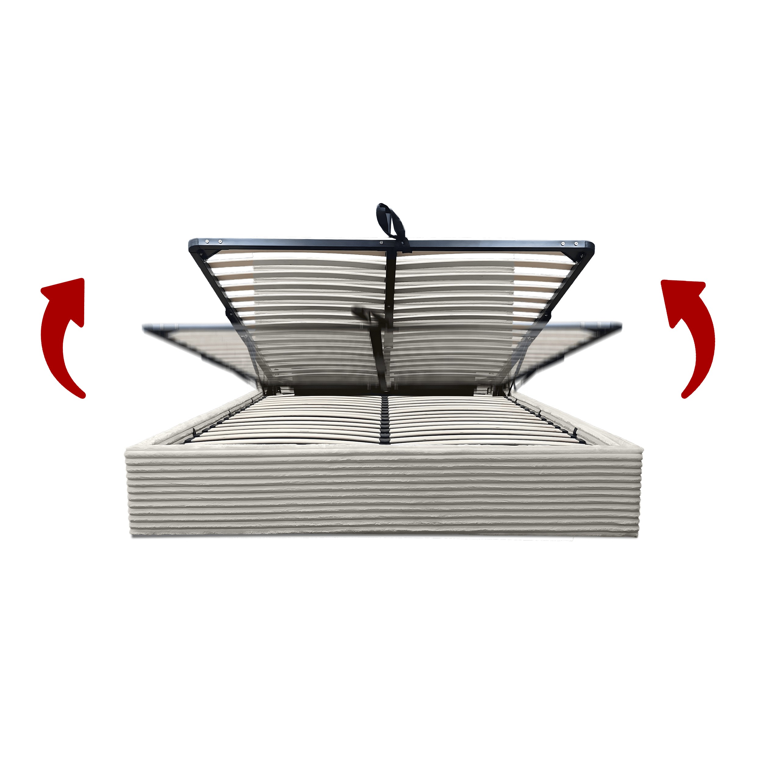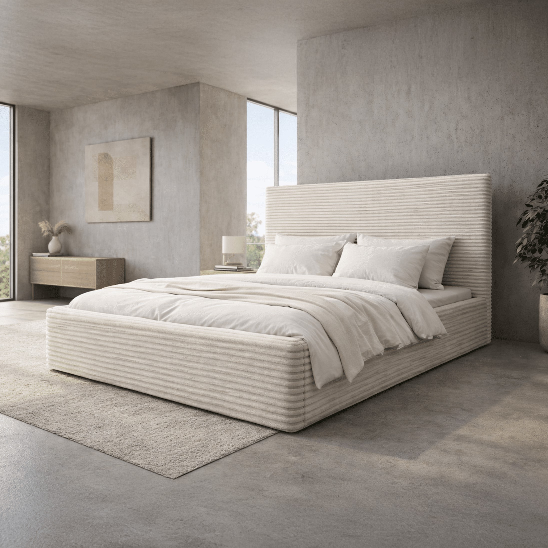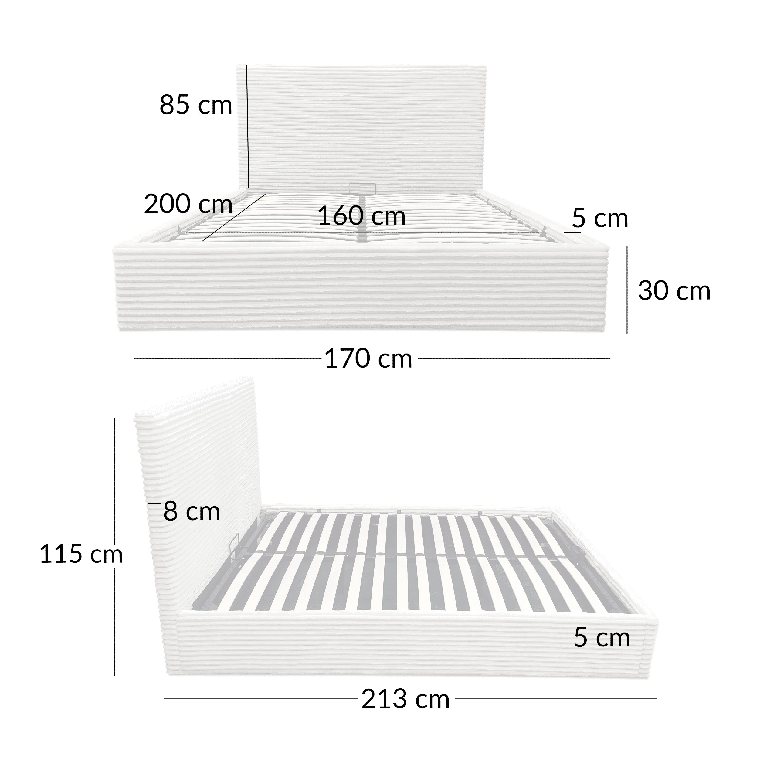 Кровать Cordo LT100 с увеличенной спальной поверхностью 160x200 см — идеальное решение для уютной спальни. Кремовая обивка из вельветовой ткани создает уютную атмосферу, а ящик для постельного белья облегчает хранение вещей.