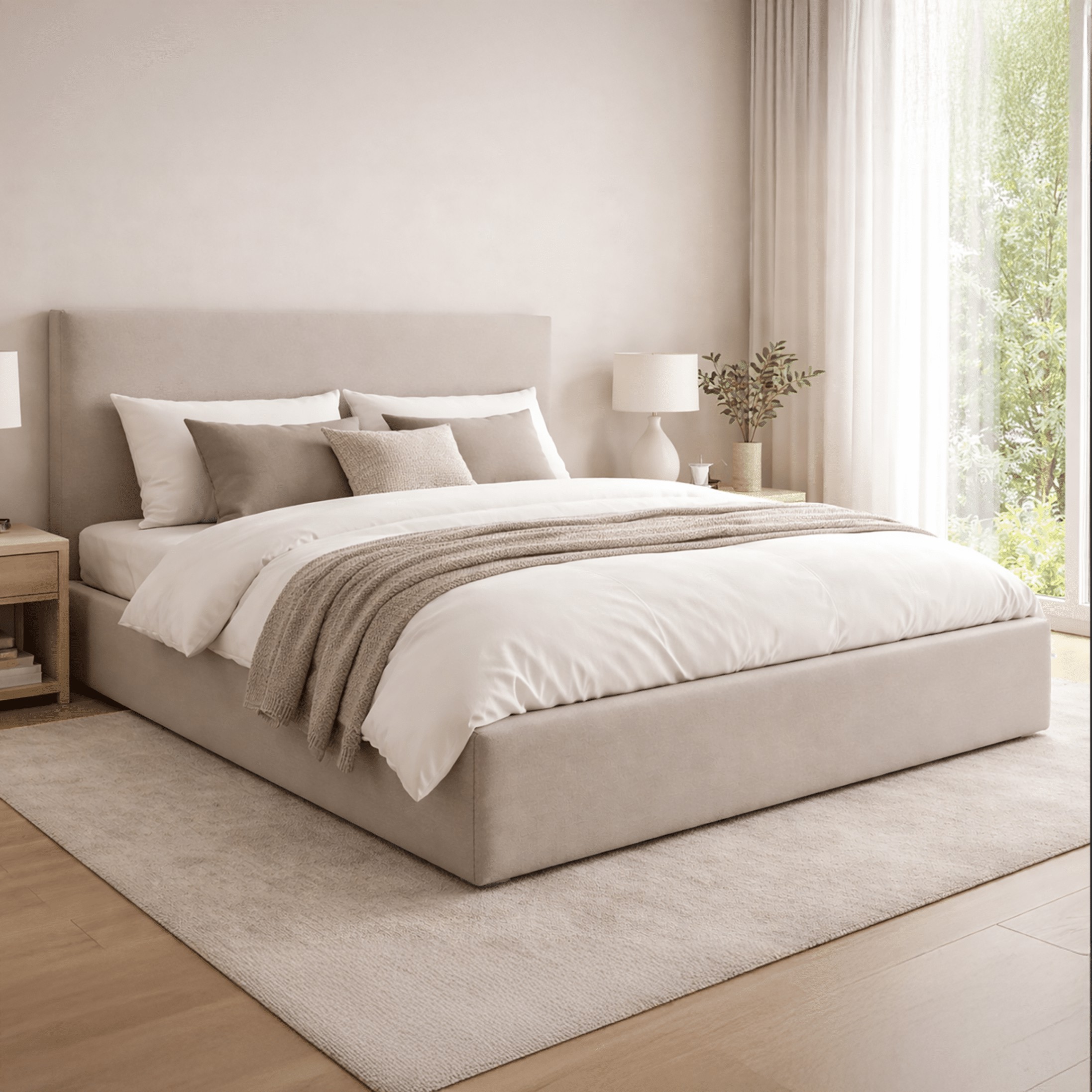 Мягкая кровать с ящиком для хранения и изголовьем Velio LT101 140x200x115, цвет «тауп»