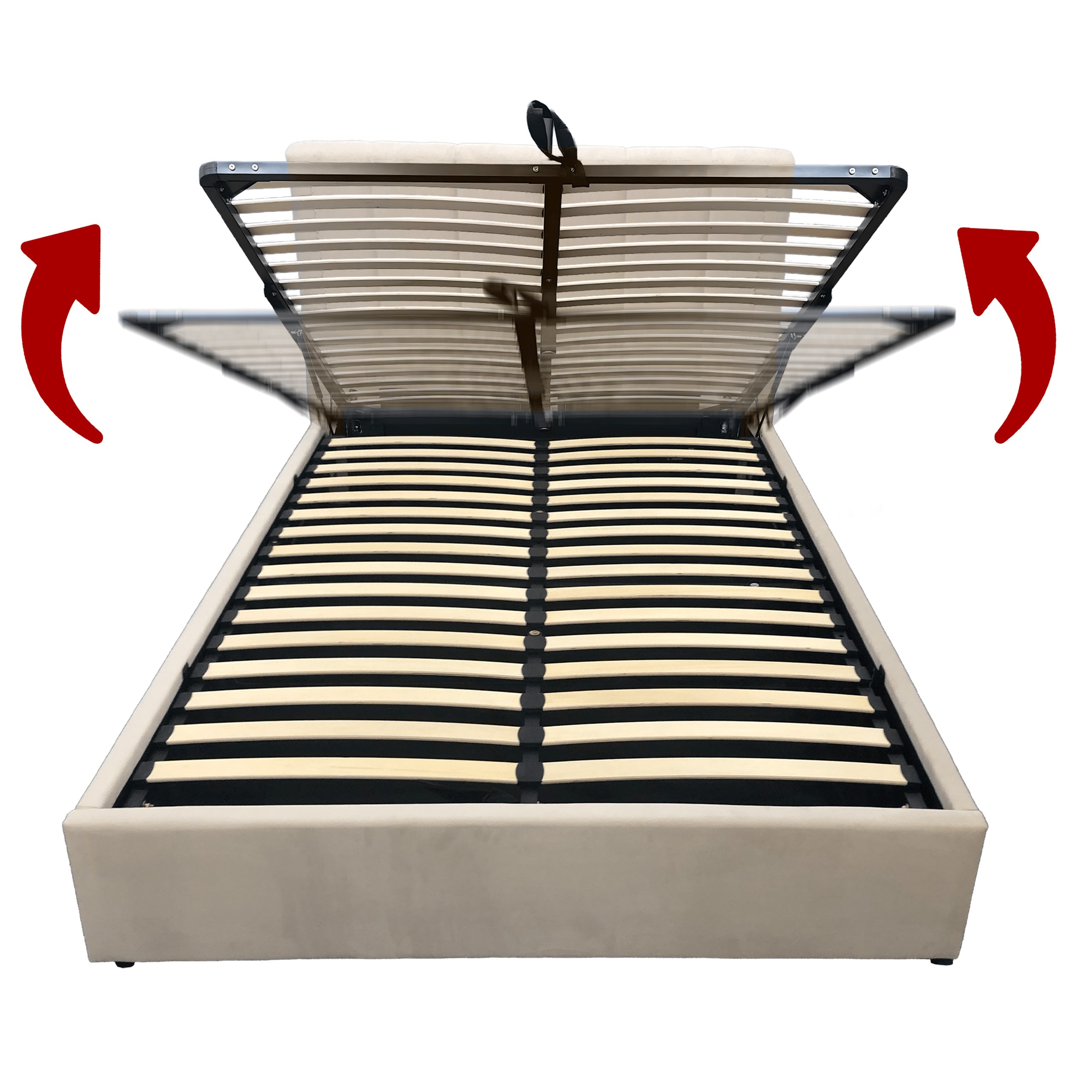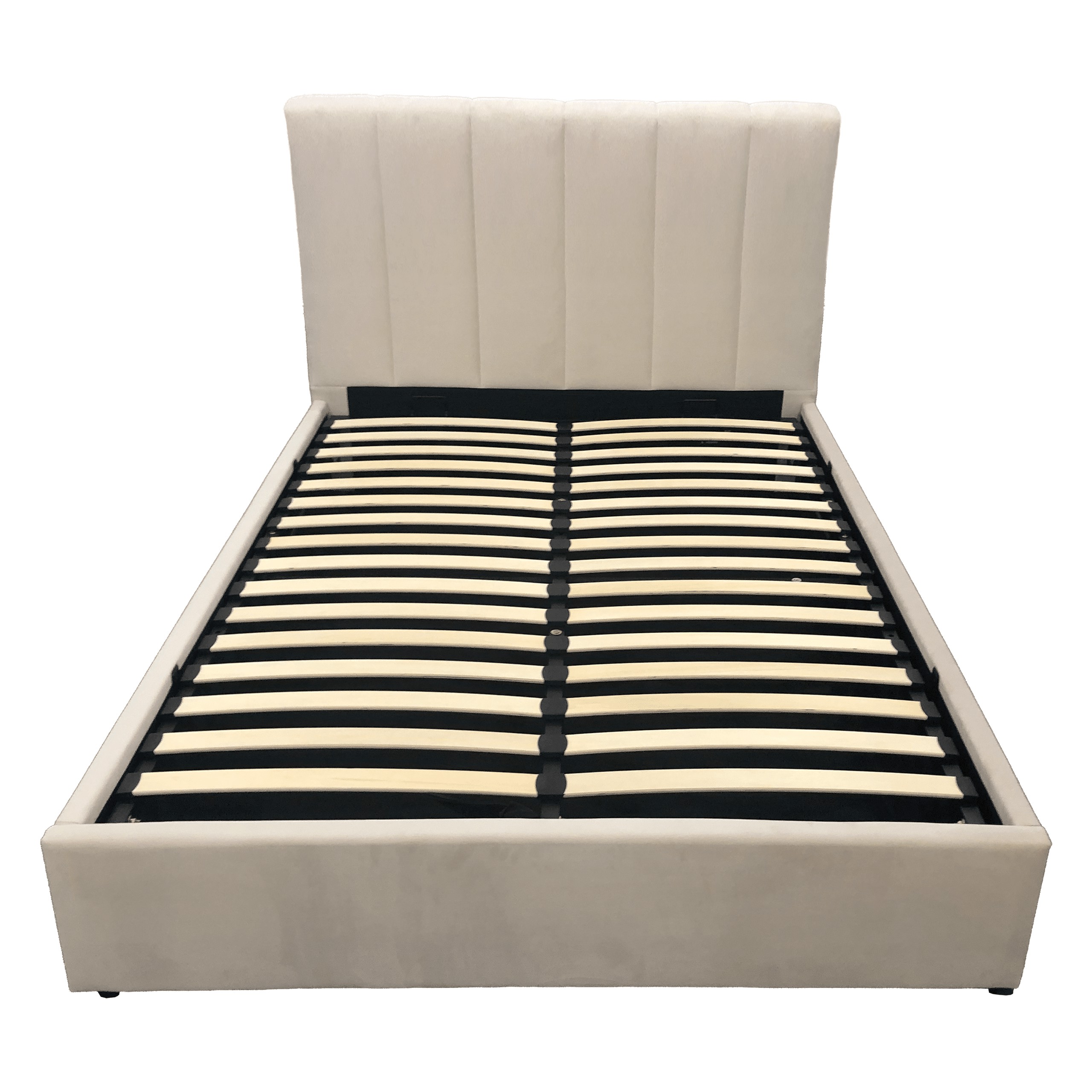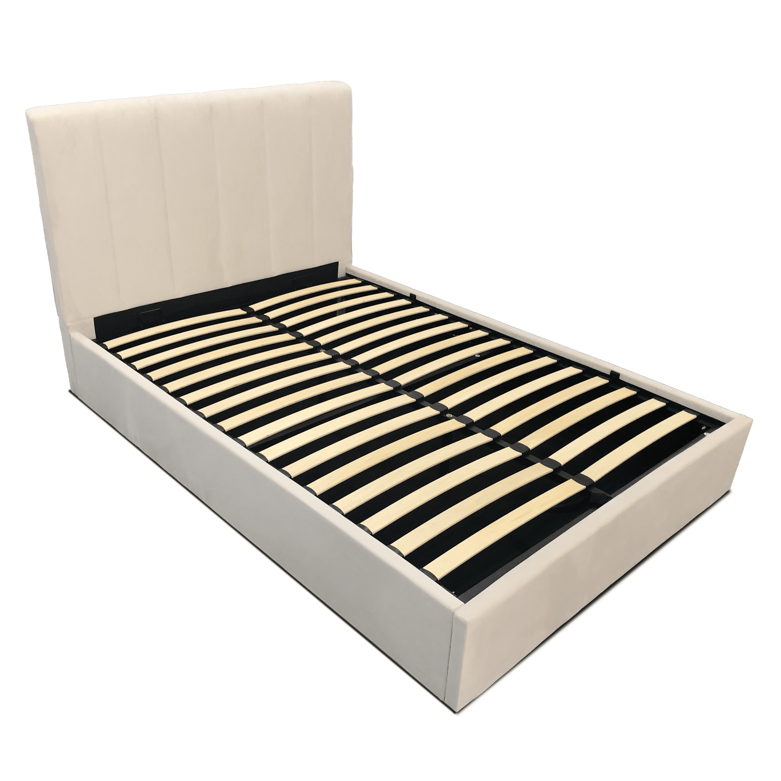 Мягкая кровать Vertica — это элегантное и функциональное решение для спальни, сочетающее в себе комфорт сна с практичным ящиком для постельного белья и высоким эффектным изголовьем.