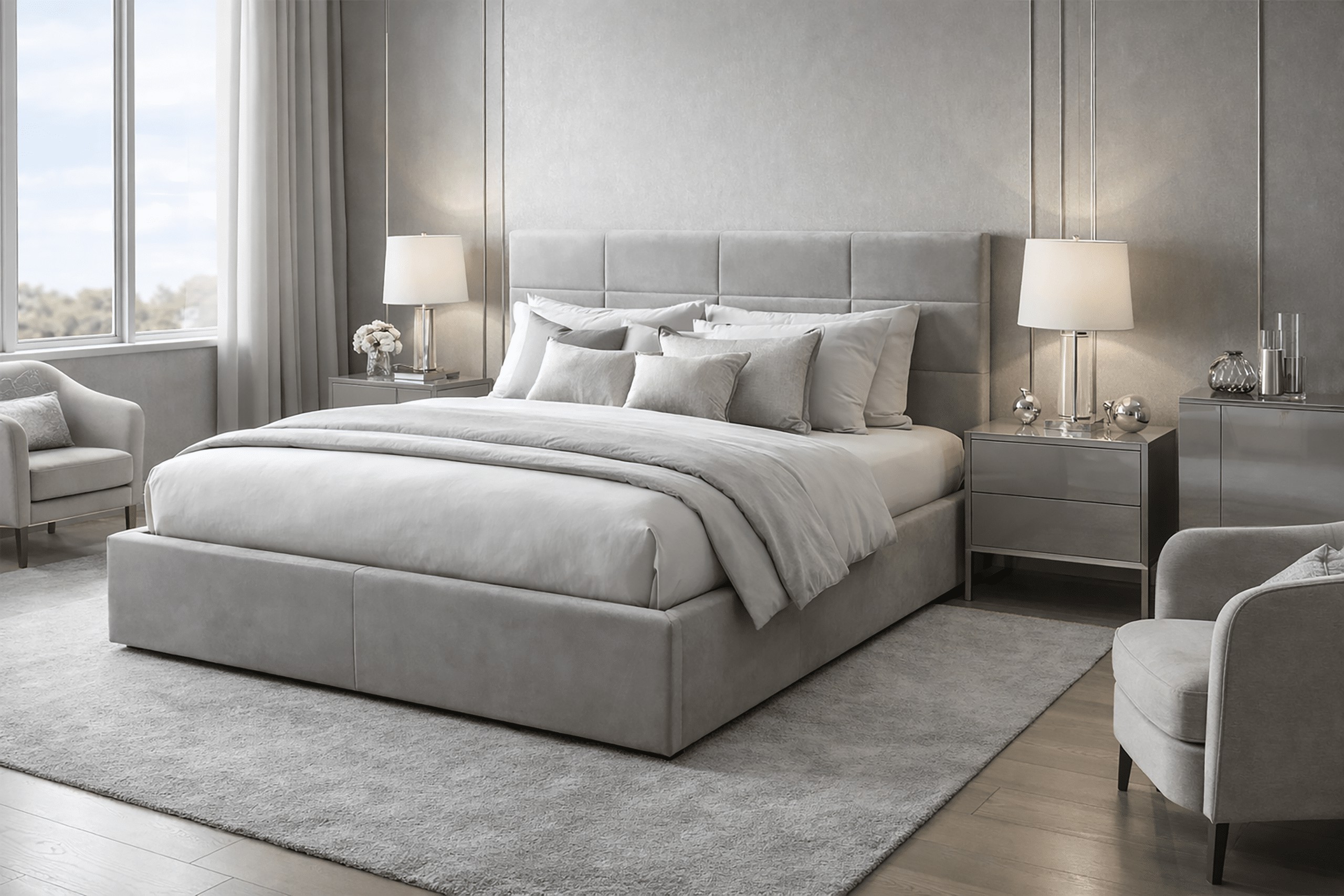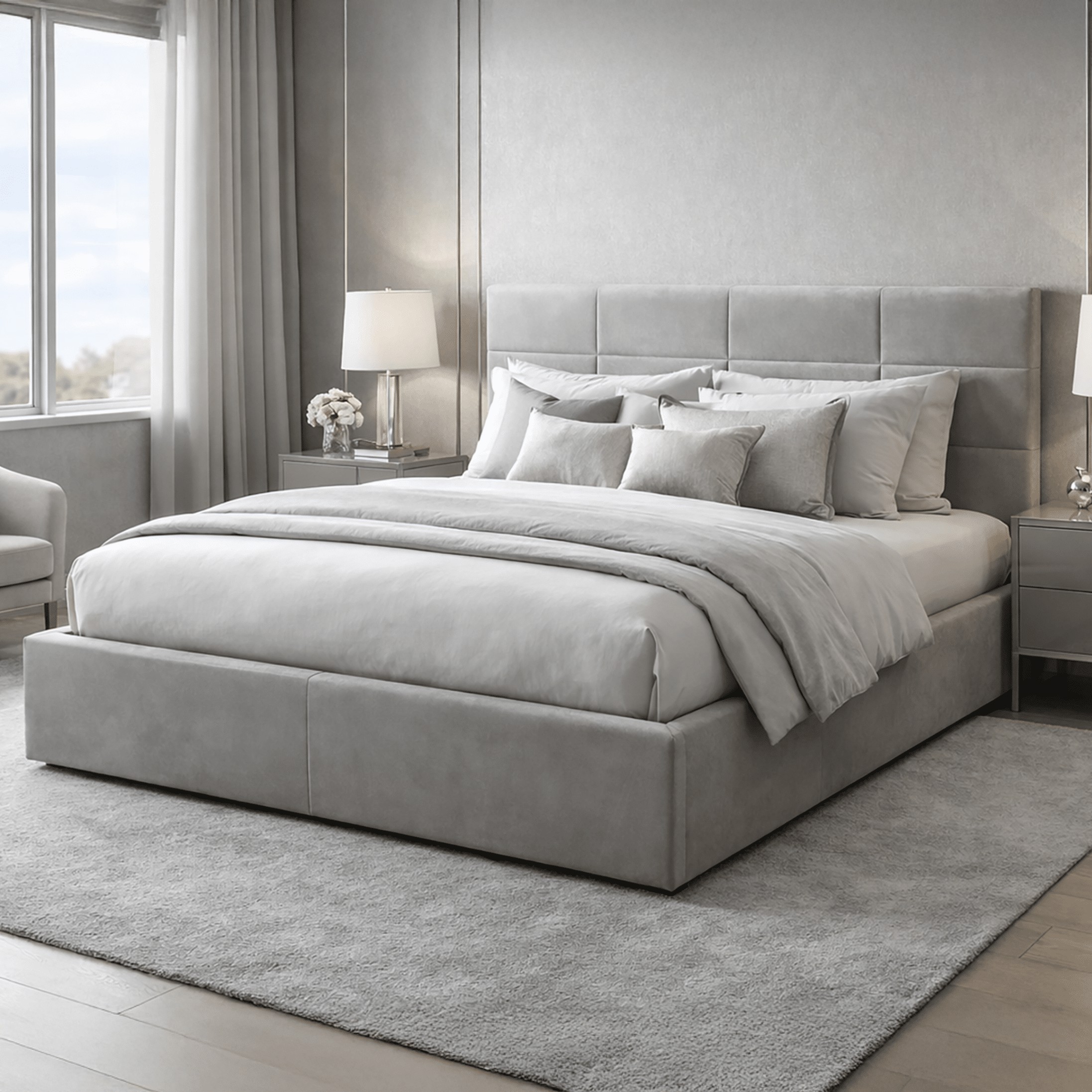 Серая версия кровати LT103 Quadro представляет собой универсальное сочетание элегантности и функциональности, которое гармонично вписывается в современные и классические интерьеры спальни.