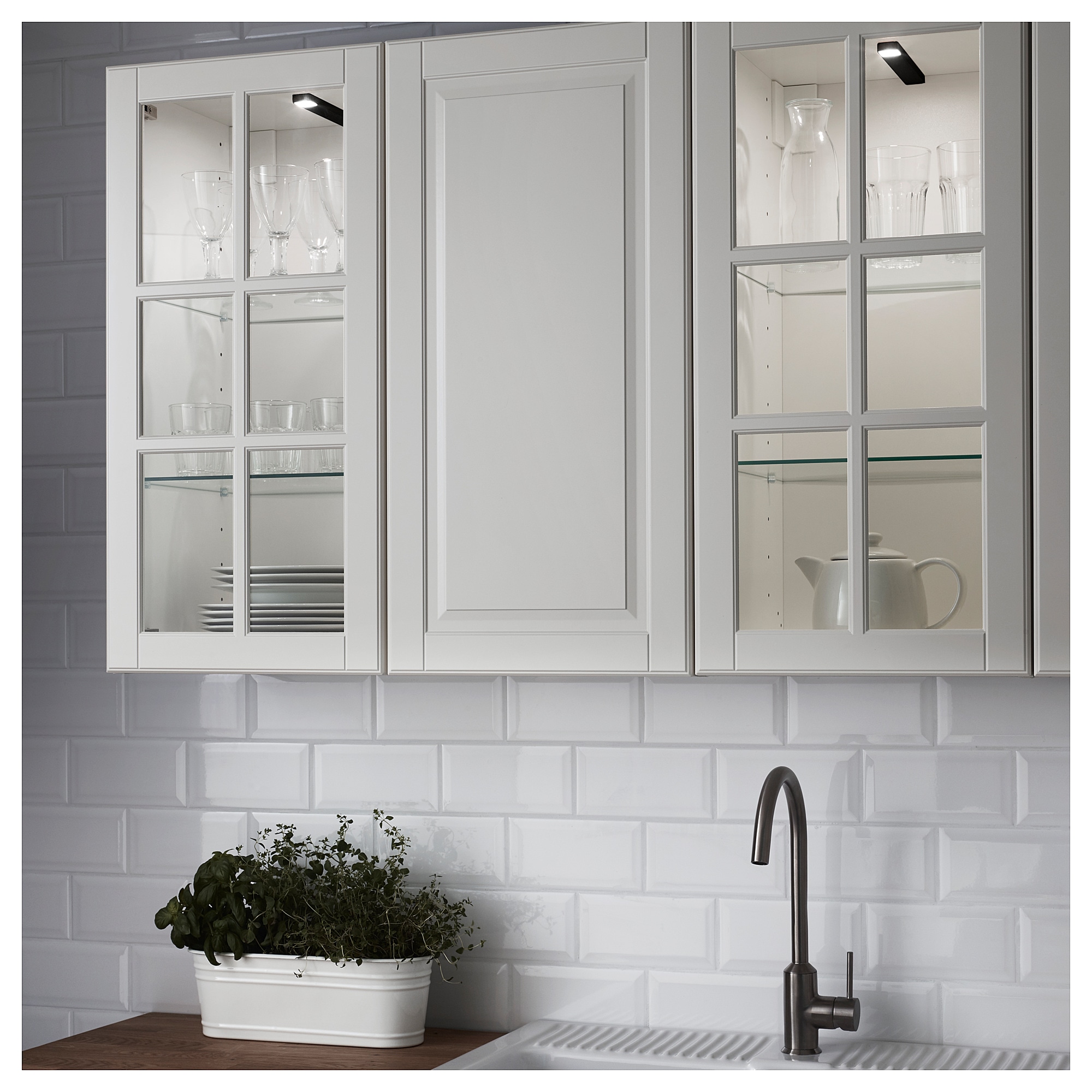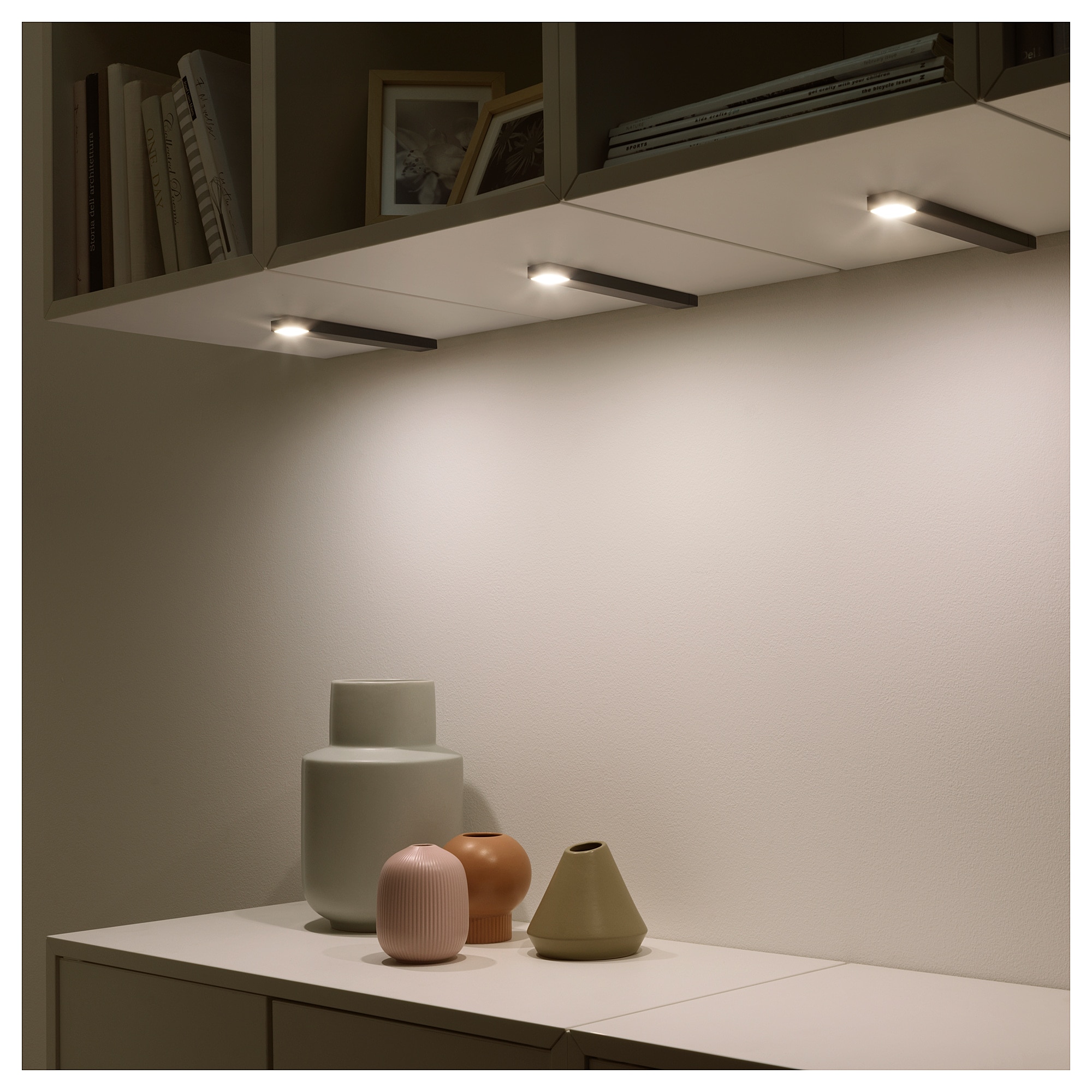Яркость освещения можно регулировать с помощью беспроводного реостата. Софиты ОМЛОПП обеспечивают освещение внутреннего пространства шкафа и удобный обзор содержимого. Подчеркивает интерьерное решение вашей кухни. Светодиоды по сравнению с лампами накаливания потребляют до 85% меньше электроэнергии и служат в 20 раз дольше.