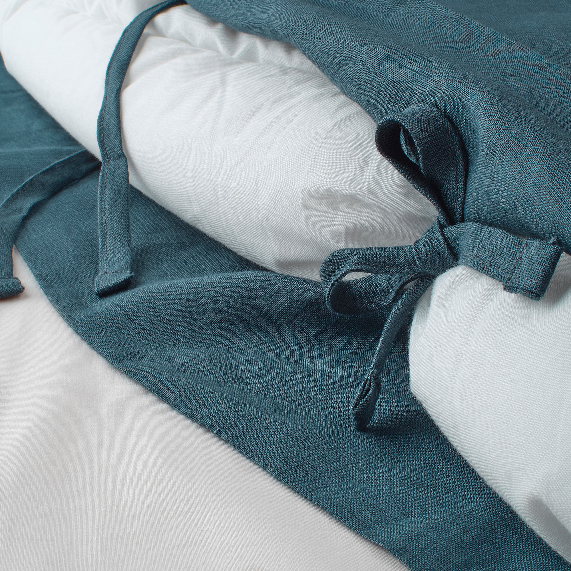 Пододеяльник и наволочка фиксируются с помощью декоративной тесьмы.