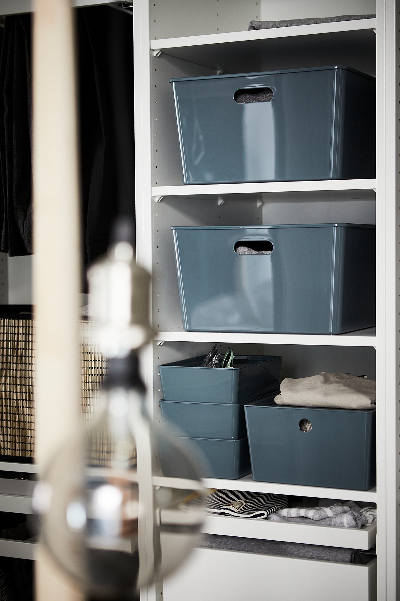 Благодаря дополнительной прорезной ручке контейнер легко выдвинуть, даже если он стоит на узкой полке.