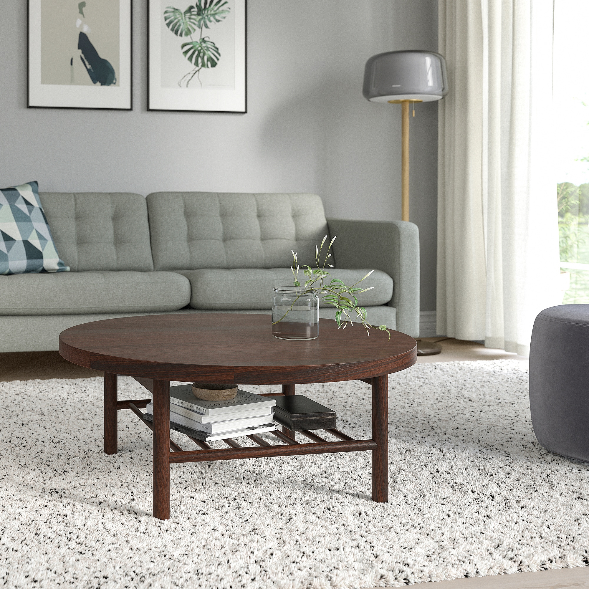 Поверхность темного натурального дерева имеет выразительную отделку, которая делает стол фокусом вашей гостиной, а округлые линии придают ему теплый и нежный вид.