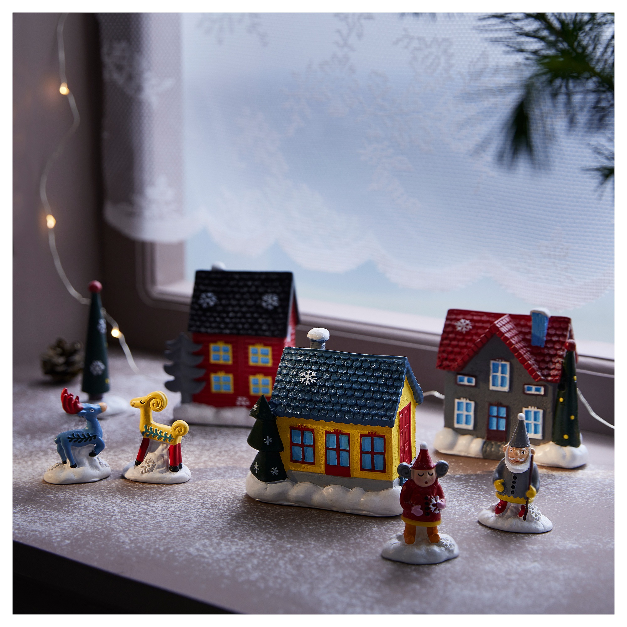 В набор входят: 2 домика (9х8 см), 1 домик (8х9 см), 1 персонаж (4х5 см), 1 персонаж (4х6 см), 2 зверька (4х5 см) и 1 дерево (4х8 см).