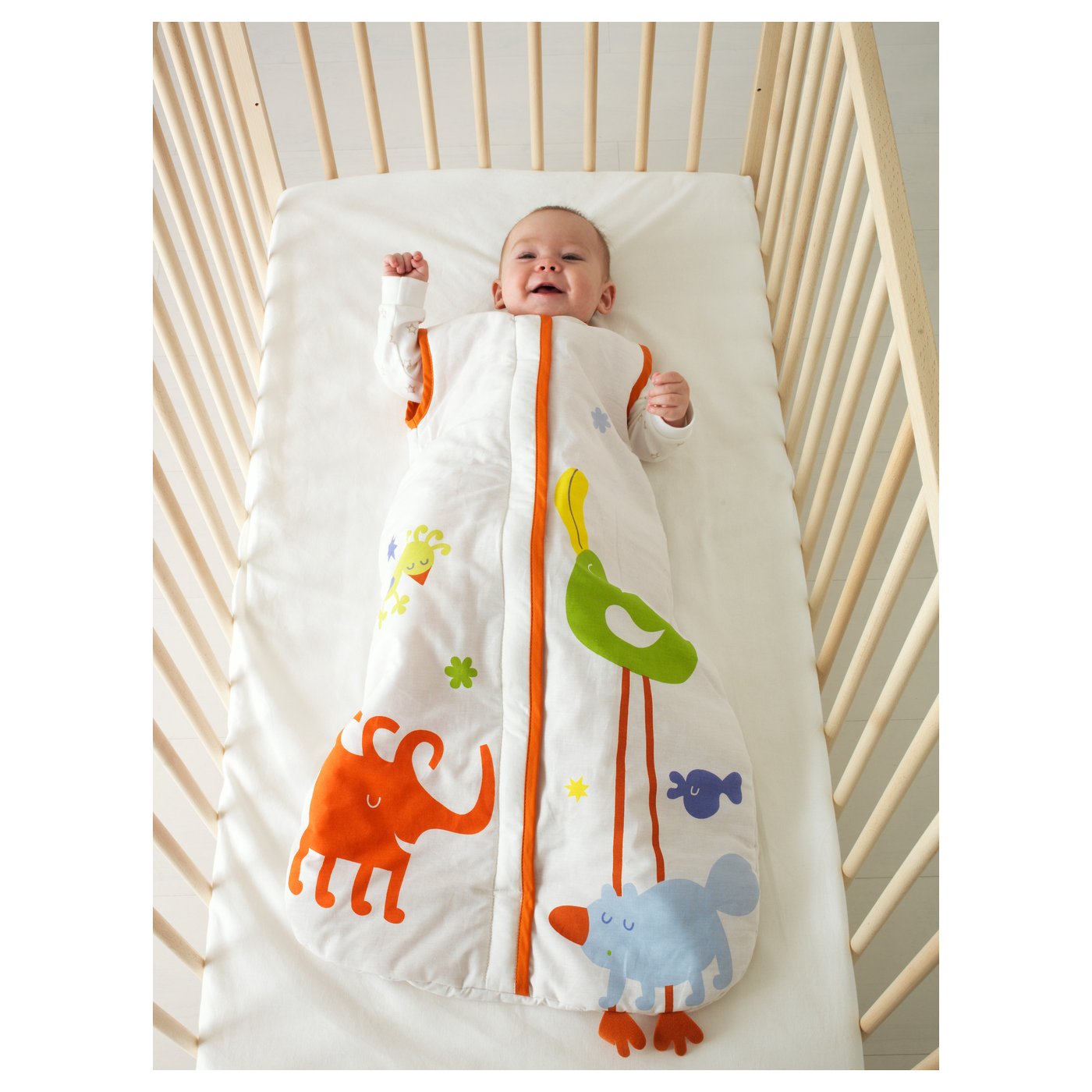 Можно взять с собой в поездку. Спальный мешок заменяет одеяло, которое ребенок может легко скинуть во время сна, и обеспечивает равномерный температурный режим для спокойного сна. Благодаря длинной молнии спальный мешок удобно надевать и снимать.