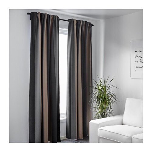 Плотная ткань гардин препятствует проникновению дневного света и защищает комнату от посторонних глаз. Не пропускают зимний сквозняк и летнюю жару. Гардины можно вешать на гардинный карниз или гардинную шину. Тесьма по верхнему краю позволяет делать складки на гардинах, используя гардинные крючки РИКТИГ. Гардины можно вешать, пропустив карниз через потайные петли, или с помощью колец и крючков.
