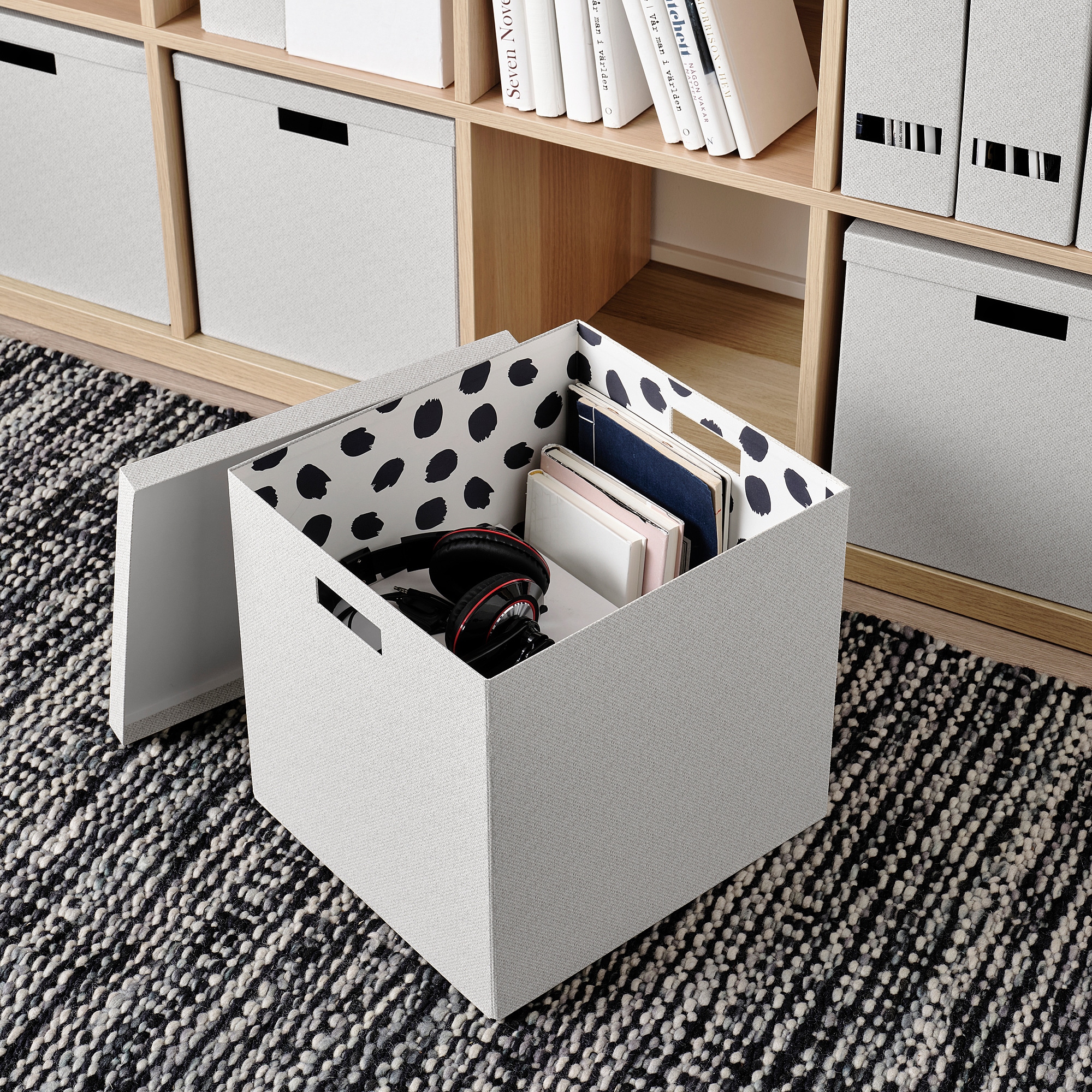 В этом контейнере вы можете хранить вещи, которые вы хотите иметь под рукой, но при этом спрятать. Внешняя часть имеет рельефную структуру, похожую на ткань, а забавные черные точки приветствуют вас, когда вы поднимаете крышку.