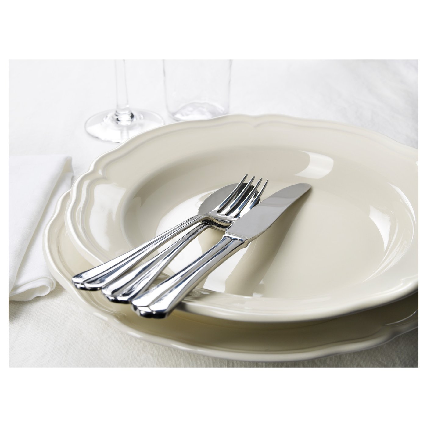 В комплект входят: 6 вилок, 6 ножей, 6 ложек и 6 чайных ложек.