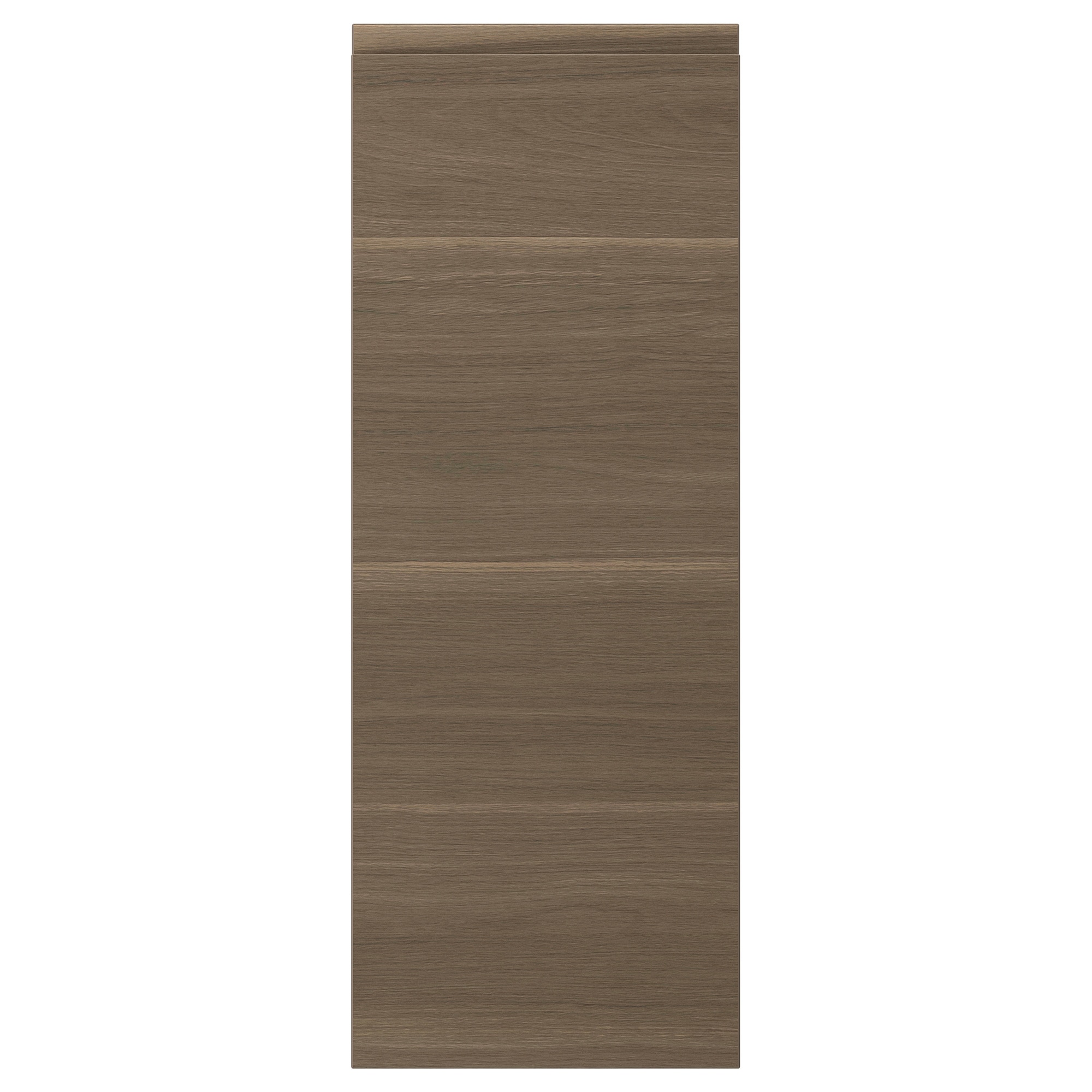 Можно дополнить глянцевыми светло-бежевыми накладными панелями, цоколями и декоративными карнизами ВОКСТОРП под грецкий орех.