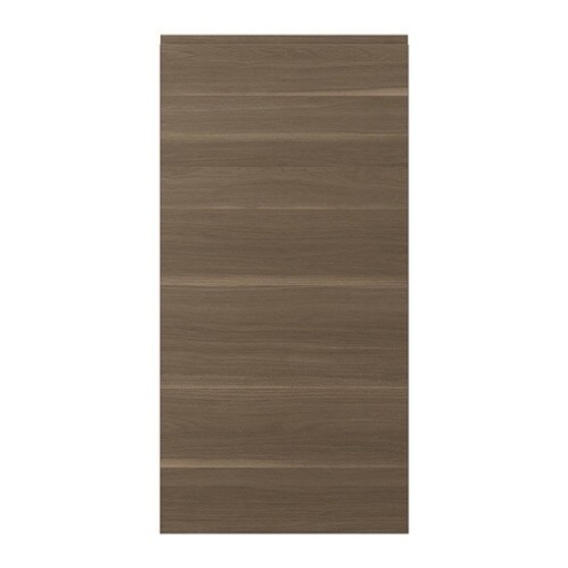 Можно дополнить глянцевыми светло-бежевыми накладными панелями, цоколями и декоративными карнизами ВОКСТОРП под грецкий орех.