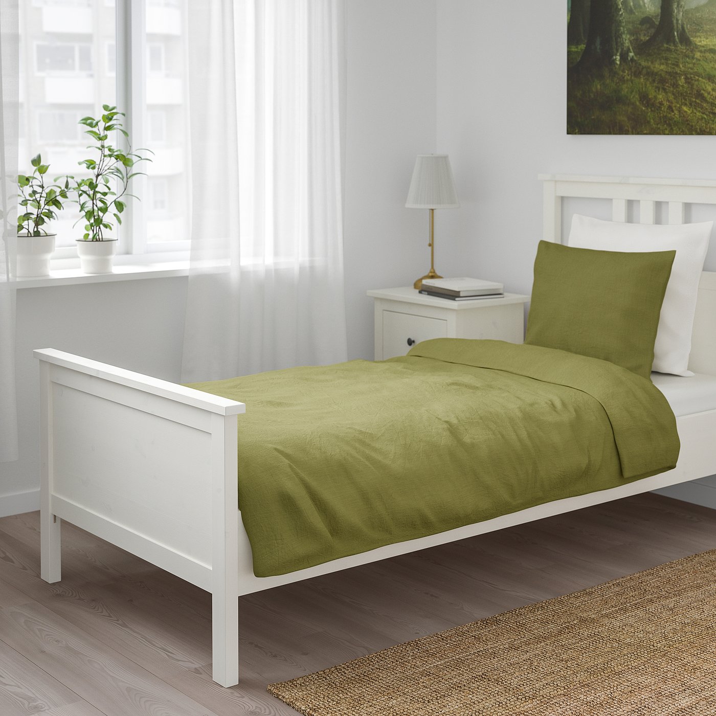 Пододеяльник и наволочка фиксируются с помощью декоративной тесьмы.