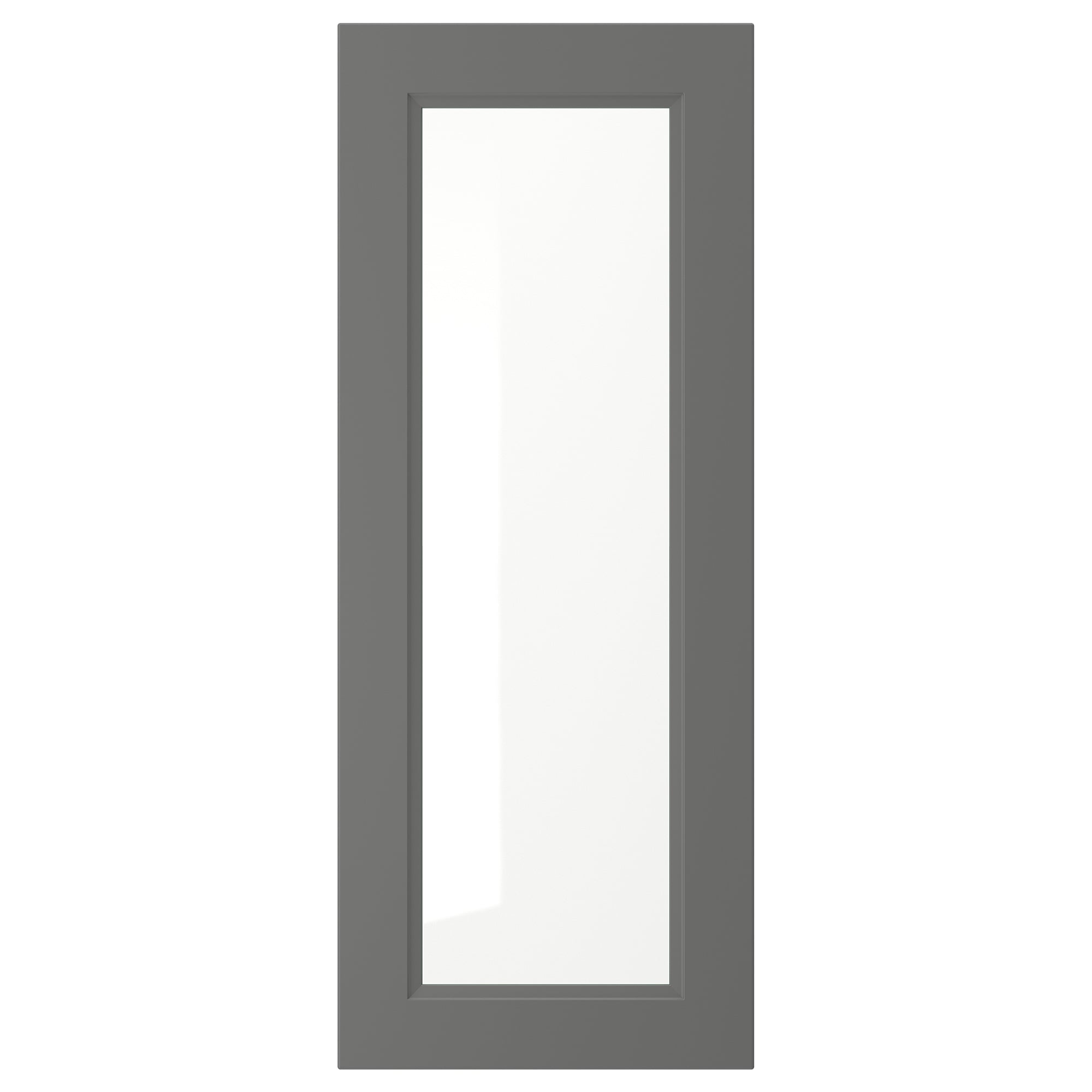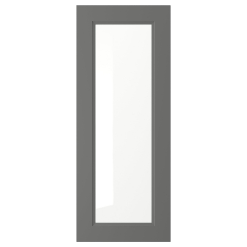 Стеклянные двери AXSTAD имеют матовую темно-серую поверхность с мягкими линиями и вставленной стеклянной панелью. Это позволяет использовать их для создания современной и традиционной кухни.
