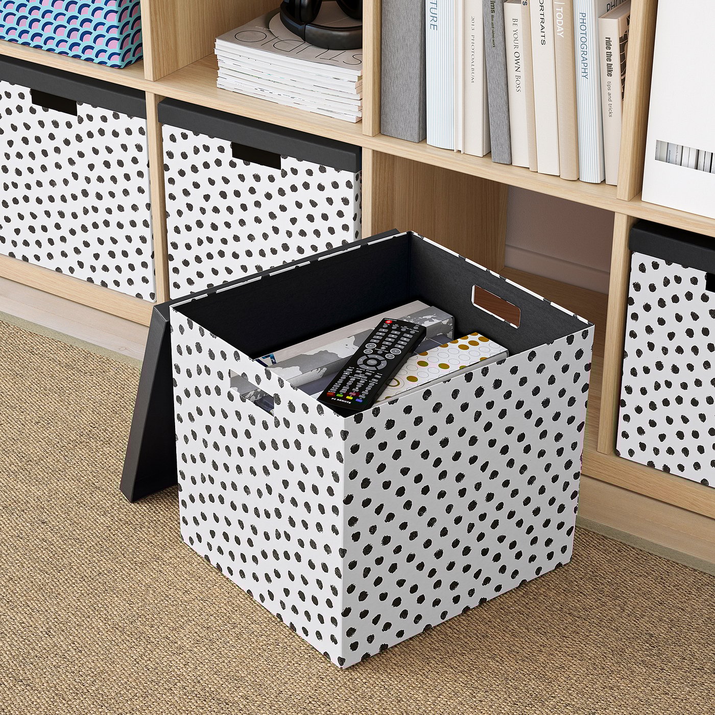 Благодаря прорезным ручкам коробку удобно поднимать и переносить.