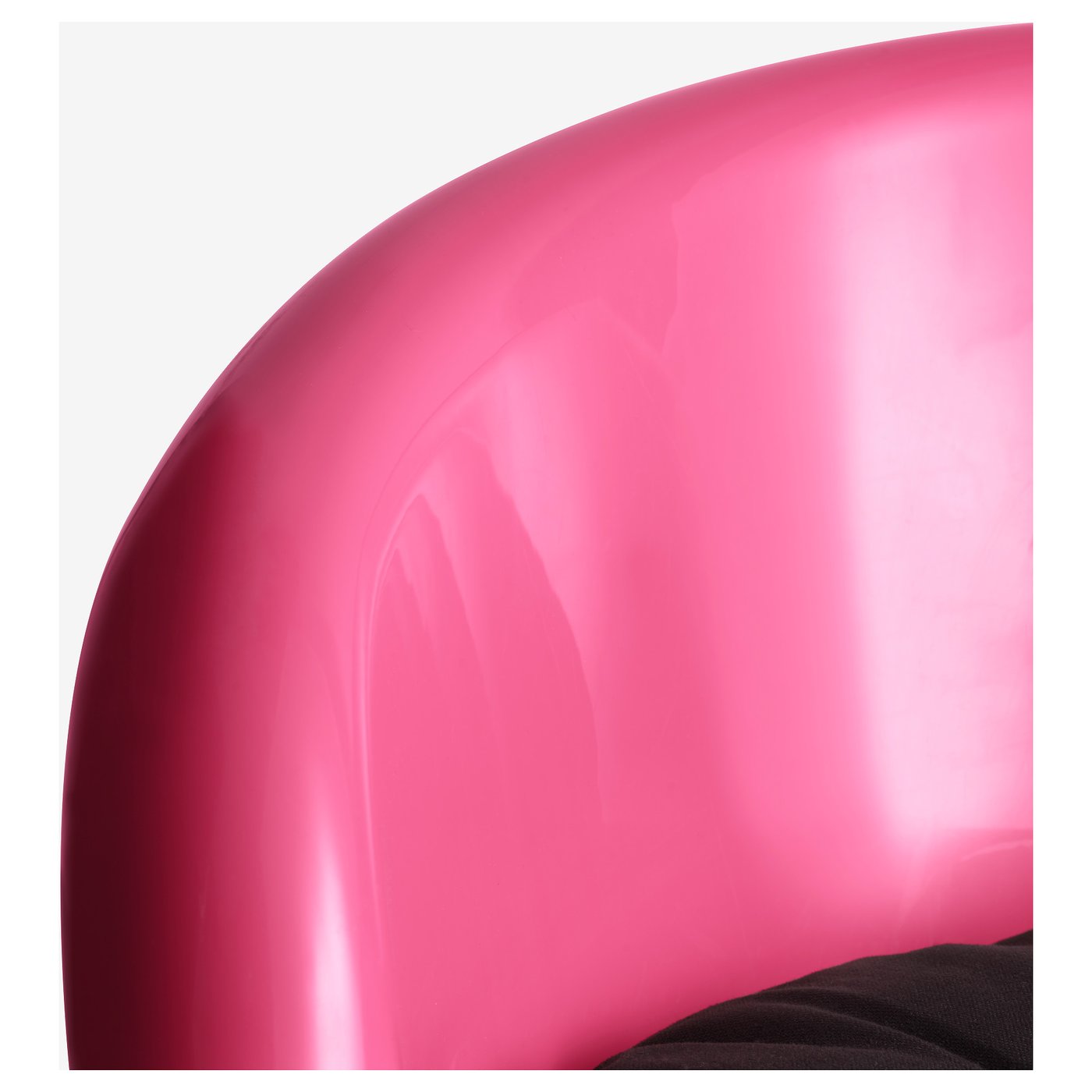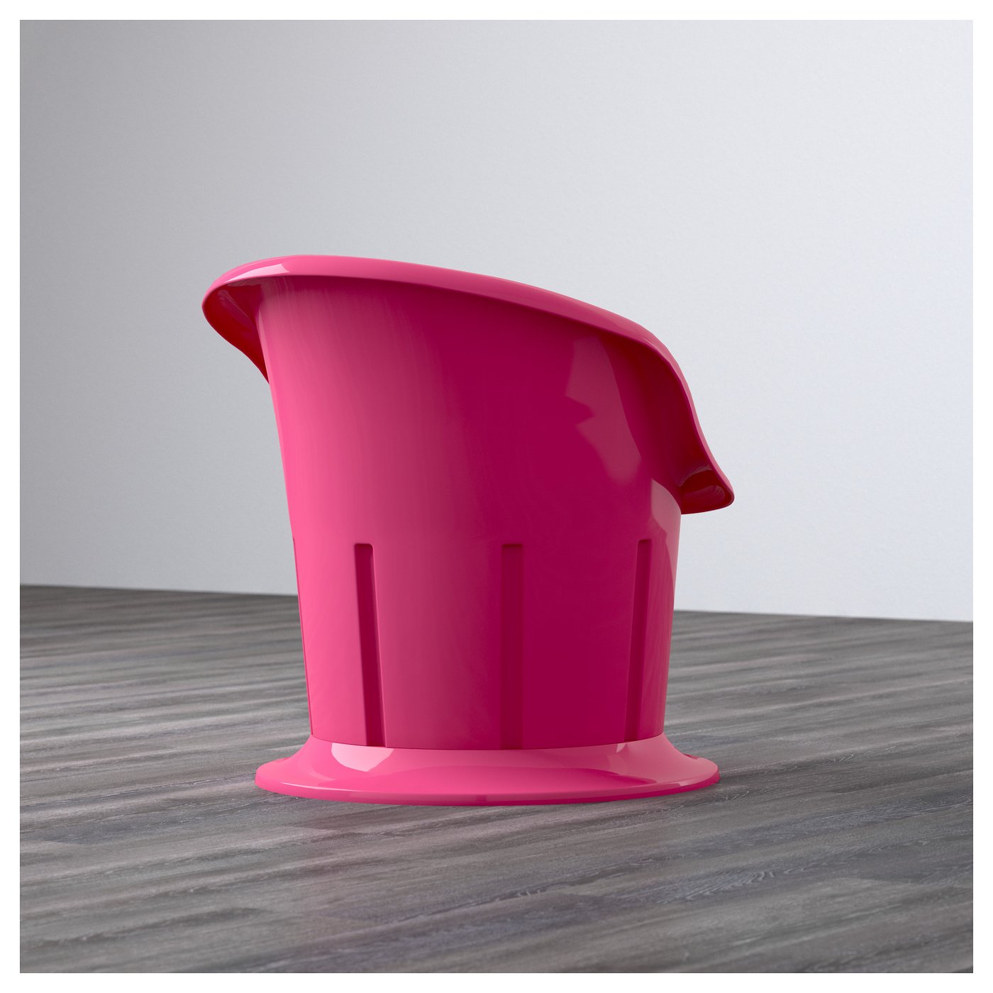 "Кресло, которое будет радовать глаз, – такой была идея создания кресла ПОПТОРП. Поэтому мы выбрали яркие цвета и блестящую поверхность. Но конечно, нельзя забывать и о комфорте. Кресло очень удобно, особенно если вы дополните его подушкой. Отделение под сиденьем – отличное решение для хранения игрушек, электронных устройств или... охлажденных напитков. Кресло можно использовать на улице, так как перфорация в основании кресла предотвращает скопление воды".
