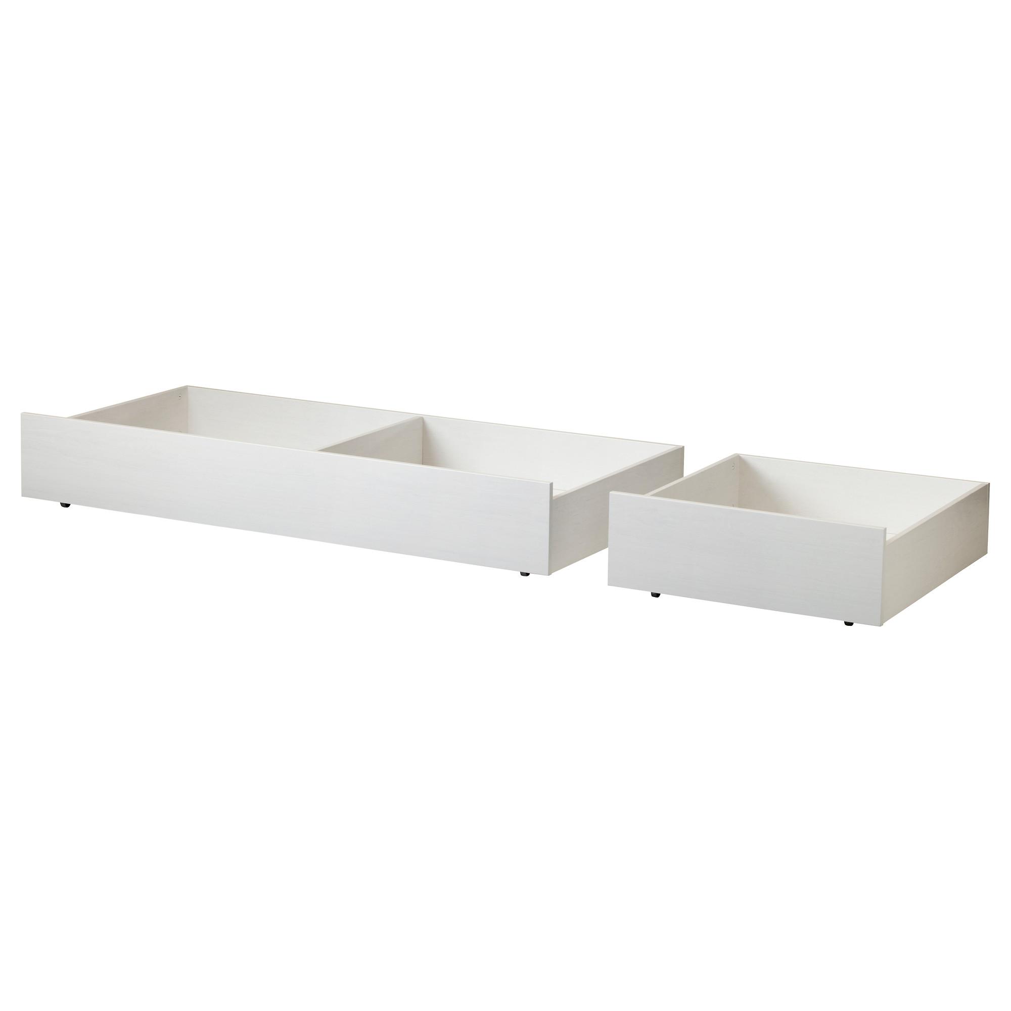 2 или 4 кроватных ящика, расположенных под кроватью, обеспечат дополнительное место для хранения. Колесики с плавным ходом обеспечивают легкий доступ к содержимому.