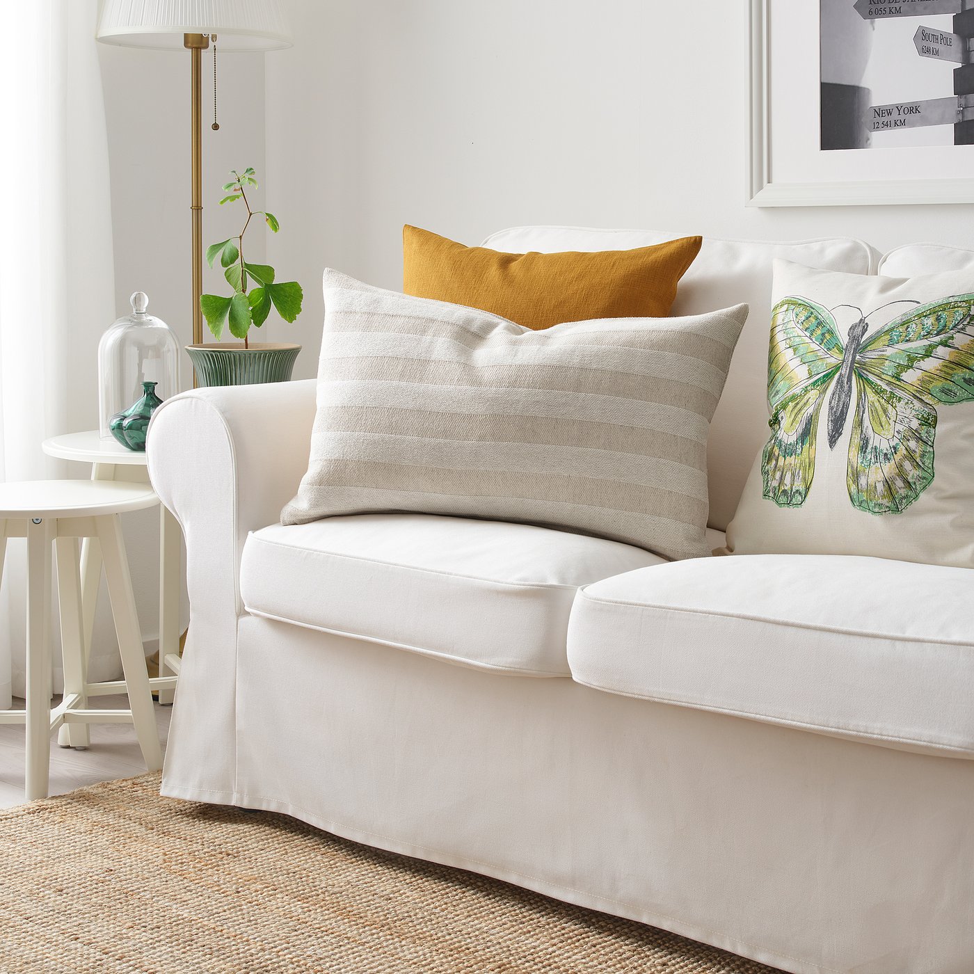 Пенька отличается прочностью и износостойкостью. Чехол из ткани с добавлением пеньки приобретает выразительную фактуру, хорошо сохраняет форму и со временем будет выглядеть только лучше.