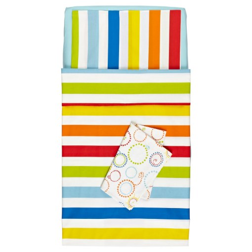 В набор входит: покрывало (70x90 см), пододеяльник(110x125 см), наволочка (35x55 см) и натяжная простыня (60x120 см).