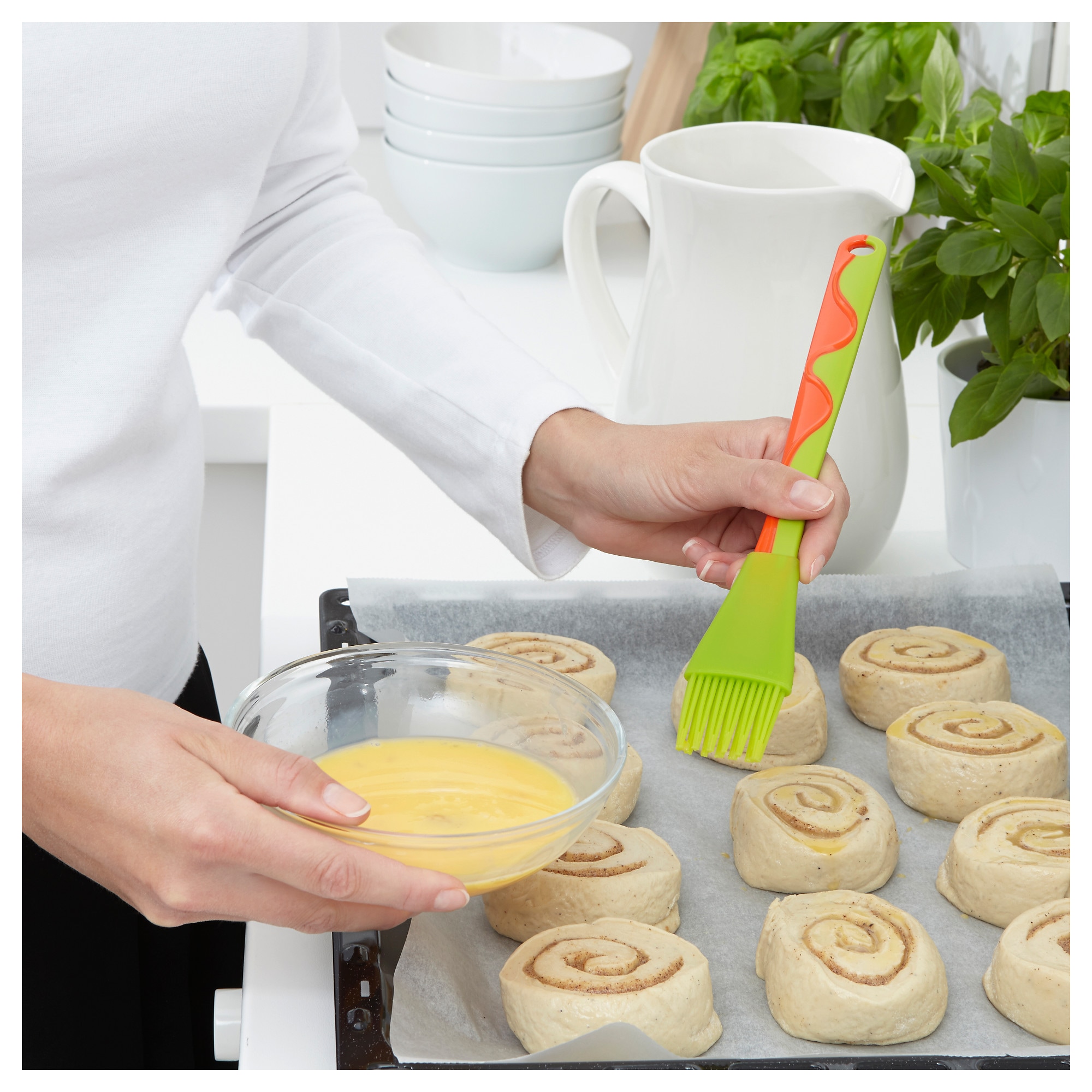 Благодаря длинной ручке кисть удобно держать, чтобы смазывать домашнюю выпечку яйцом или маслом.