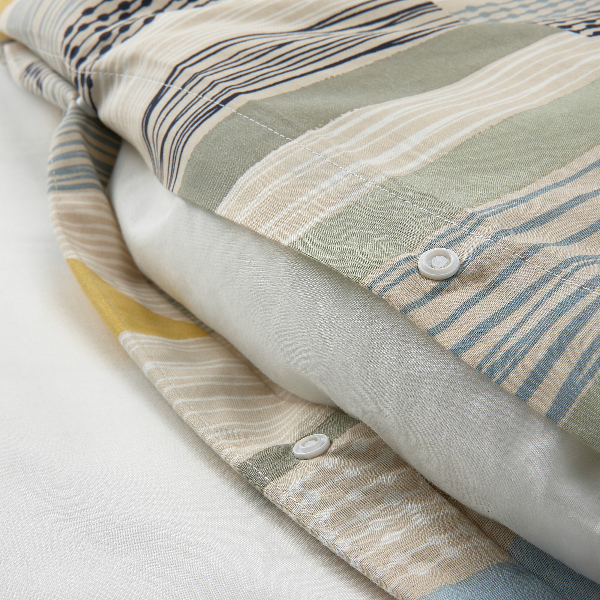 Пододеяльник застегивается на пластиковые кнопки по нижнему краю.