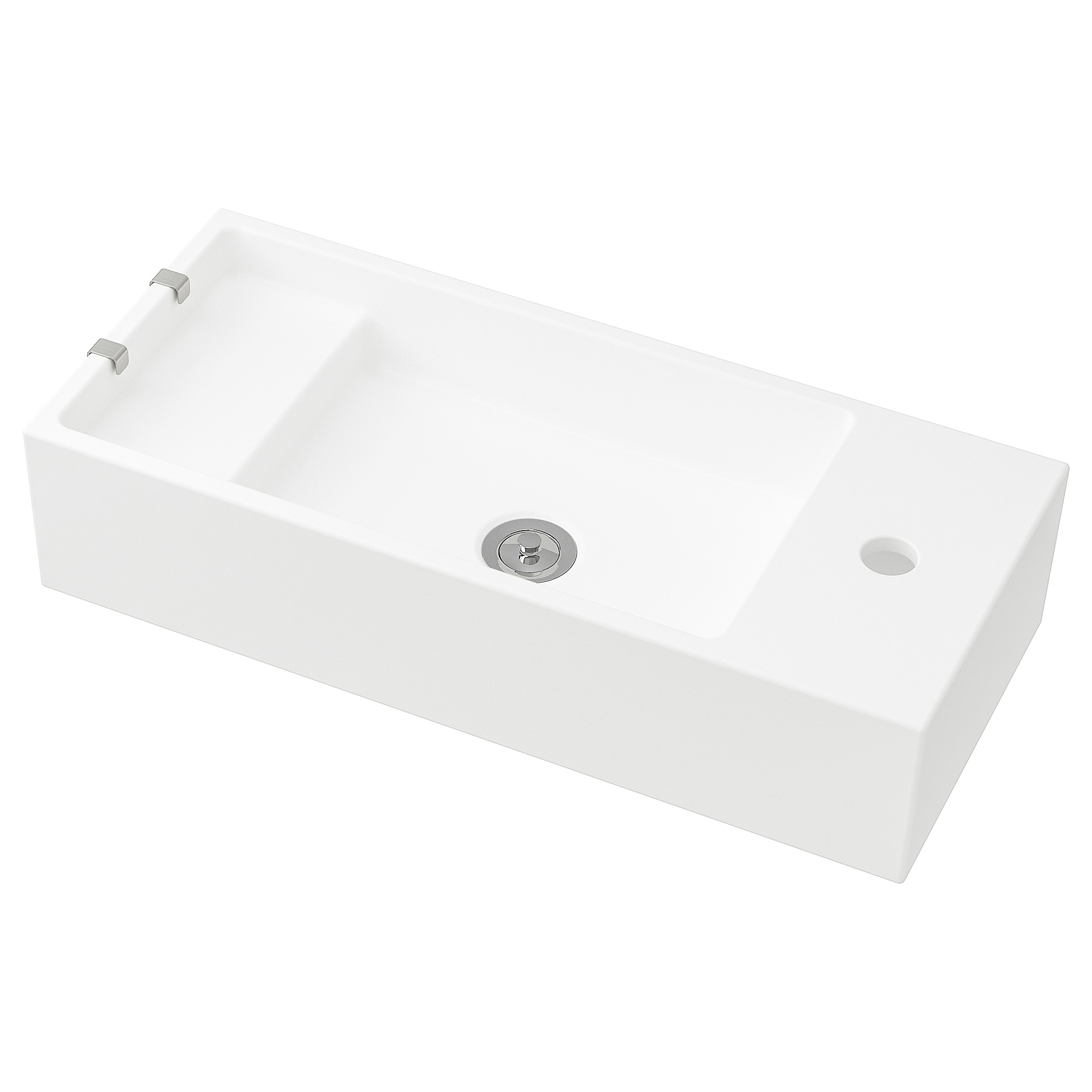 Это хорошая раковина, но убедитесь, что вы покупаете кран, который немного длиннее обычного, чтобы попасть в раковину. Короткий кран вытолкнет руки в угол, затрудняя одновременное мытье обеих рук.