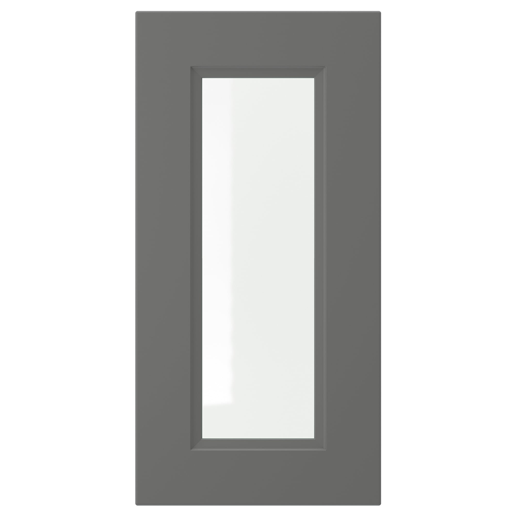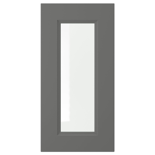 Стеклянные двери AXSTAD имеют матовую темно-серую поверхность с мягкими линиями и вставленной стеклянной панелью. Это позволяет использовать их для создания современной и традиционной кухни.