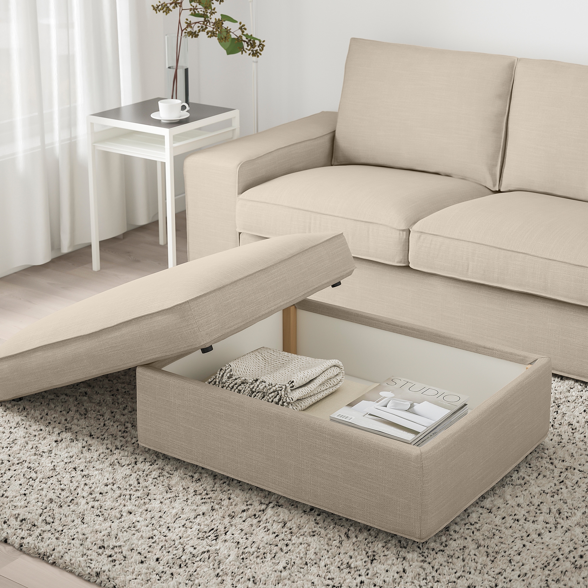 Упаковки: 2Общий вес упаковки: 29.02 кг ИКЕА КИВИККаркас табурета для ног, бежевыйАртикульный номер: 60180121Ширина: 72 смВысота: 42 смДлина: 91 смВес: 27.9 кгИКЕА КИВИКЧхл на тбрт д ног с ящ для хрн, Хилларед бежевыйАртикульный номер: 80348855Ширина: 24 смВысота: 7 смДлина: 36 смВес: 1.1 кг