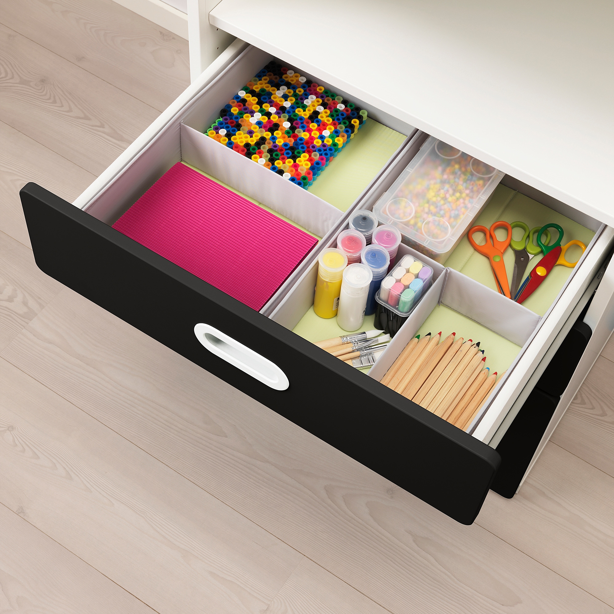 Благодаря интегрированным ручкам на фронтальной панели нет отверстий, через которые в ящик может попасть пыль.