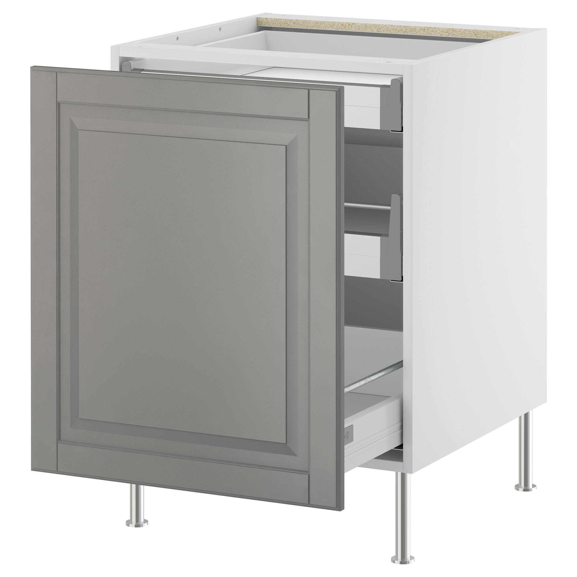 Ящики со стопором; закрываются плавно, мягко и бесшумно. Ящики выдвигаются полностью, что обеспечивает удобный обзор и доступ к содержимому. Ящики с плавным ходом и стопором. Самозакрывающиеся ящики. Каркас имеет устойчивую конструкцию, толщина 18 мм. Можно дополнить внутренними элементами РАТИОНЕЛЬ для функциональной организации пространства.