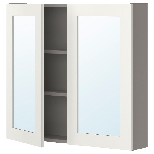 Упаковки: 3Общий вес упаковки: 18.4 кг ИКЕА ENHETПодвесной шкаф с 2 полками, серый, 80x15x75 смАртикульный номер: 30440451Ширина: 40 смВысота: 7 смДлина: 83 смВес: 11.1 кгИКЕА ENHETЗеркальная дверь, белая рамка, 40x75 смАртикульный номер: 10457739Ширина: 40 смВысота: 2 смДлина: 81 смВес: 3.6 кгKоличество: 2
