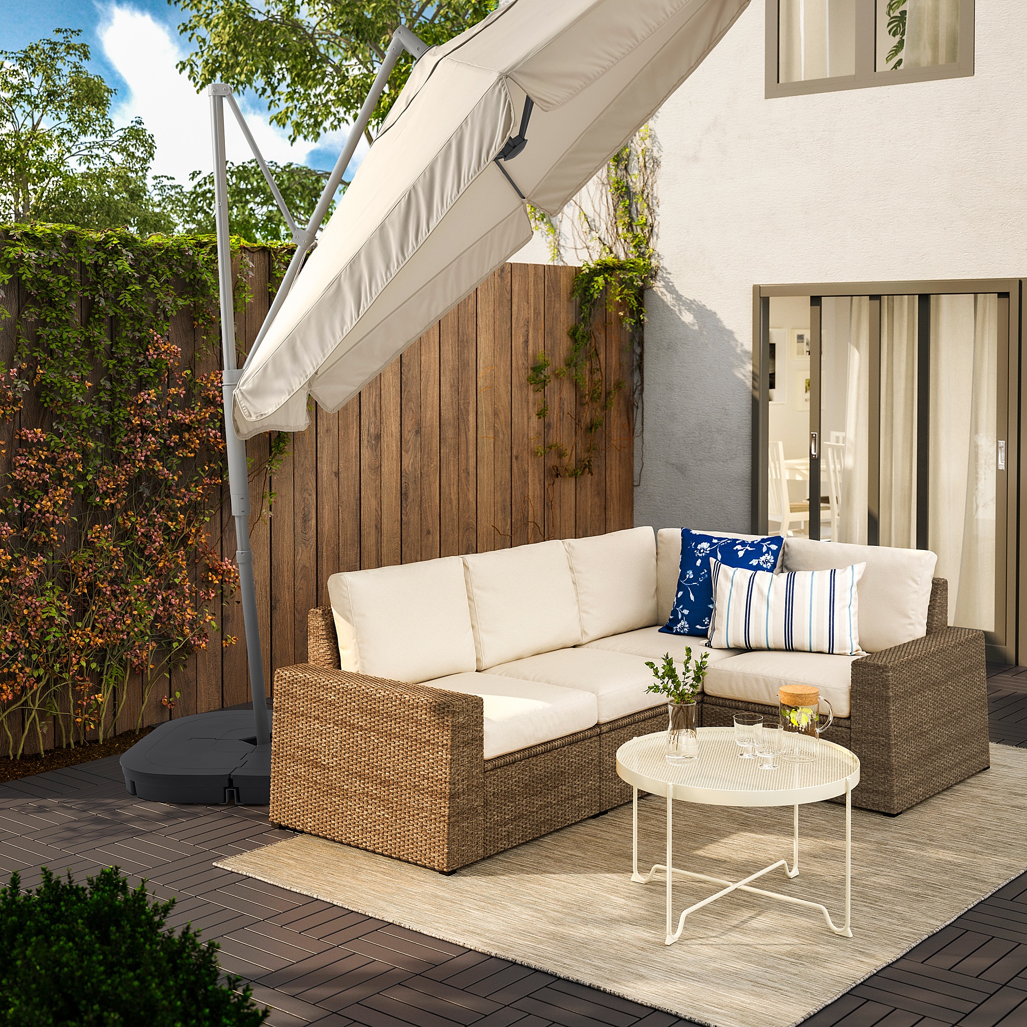 Регулируемый угол наклона зонта обеспечивает защиту от солнца в течение всего дня.