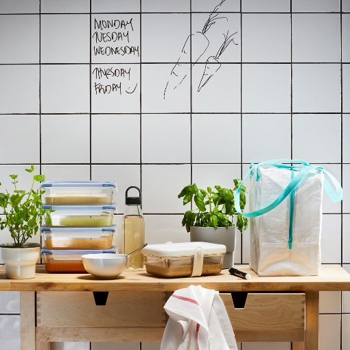 В комплекте: 1 контейнер для продуктов IKEA 365+ (1 л), 1 бутылка для воды IKEA 365+ (0,5 л) и 1 пакет для обеда IKEA 365+ (22 x 17 x 40 см).