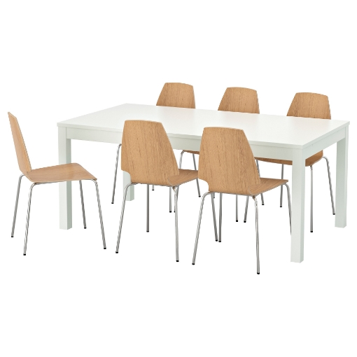 Вы можете легко и быстро изменить размер таблицы в соответствии с вашими потребностями. С 2 дополнительными blatom, легко доступны под столешницей, вы можете вместить 6-8 человек. Дополнительные листья можно хранить в пределах легкой досягаемости под столешницей. Скрытая молния сохраняет дополнительные вершины на месте и предотвращает разрывы между вершинами. Покрытые с прозрачным лаком поверхность легко протирать. Стулья можно установить друг на друга, они занимают меньше места, когда он не используется.