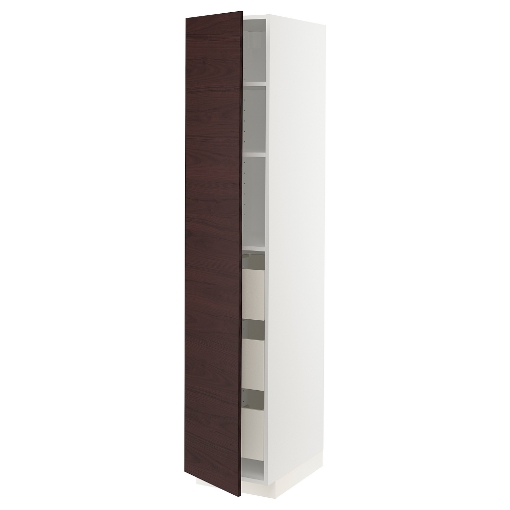 Упаковки: 11Общий вес упаковки: 75.66 кг ИКЕА АСКЕРСУНДДверь, темно-коричневый под ясень, 40x200 смАртикульный номер: 30425243Ширина: 40 смВысота: 2 смДлина: 209 смВес: 9.4 кгИКЕА МЕТОДКаркас высокого шкафа, белый, 40x60x200 смАртикульный номер: 90212559Ширина: 61 смВысота: 7 смДлина: 210 смВес: 40 кгИКЕА МАКСИМЕРАЯщик, высокая, белый, 40x60 смАртикульный номер: 00204634Ширина: 30 смВысота: 8 смДлина: 57 смВес: 5.9 кгKоличество: 3 ИКЕА УТРУСТАФронтальная панель ящика, высокий, белый, 40 смАртикульный номер: 00204653Ширина: 22 смВысота: 2 смДлина: 37 смВес: 0.9 кгKоличество: 3 ИКЕА УТРУСТАПетля со встроенным стопором, серый, 153 °Артикульный номер: 10427262Ширина: 22 смВысота: 6 смДлина: 26 смВес: 0.4 кгKоличество: 2 ИКЕА УТРУСТАПолка, белый, 40x60 смАртикульный номер: 30205613Ширина: 37 смВысота: 4 смДлина: 58 смВес: 5.2 кг