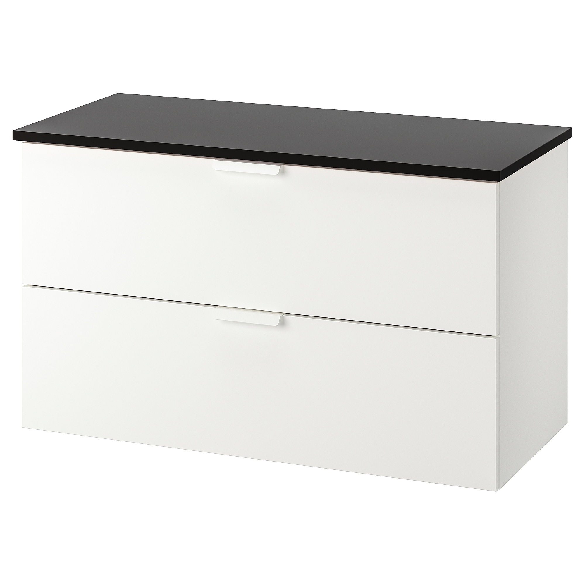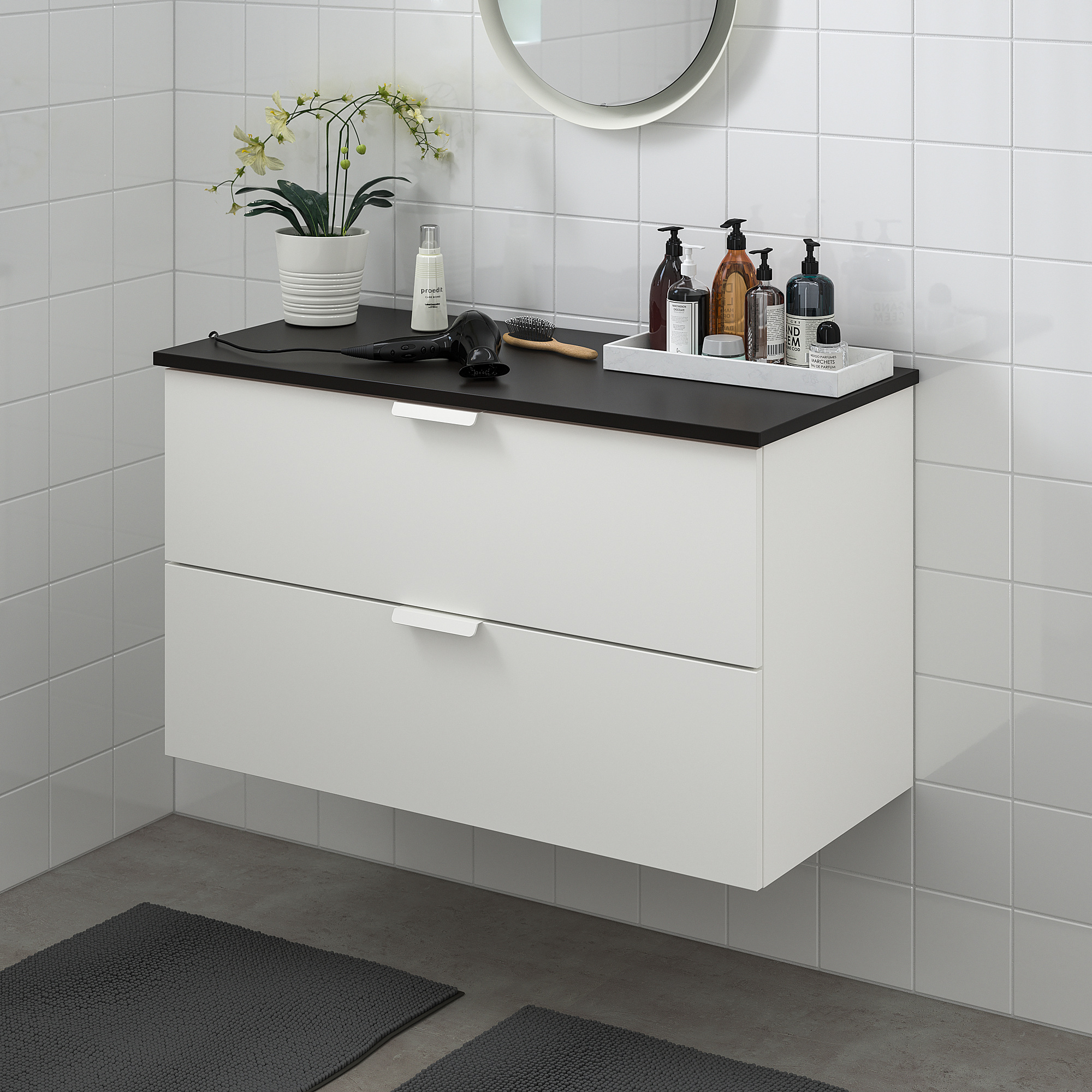 В глубоком нижнем ящике удобно хранить полотенца и фен, а в верхнем ящике достаточно места для бутылочек с шампунем и гелем для душа и разных мелочей.