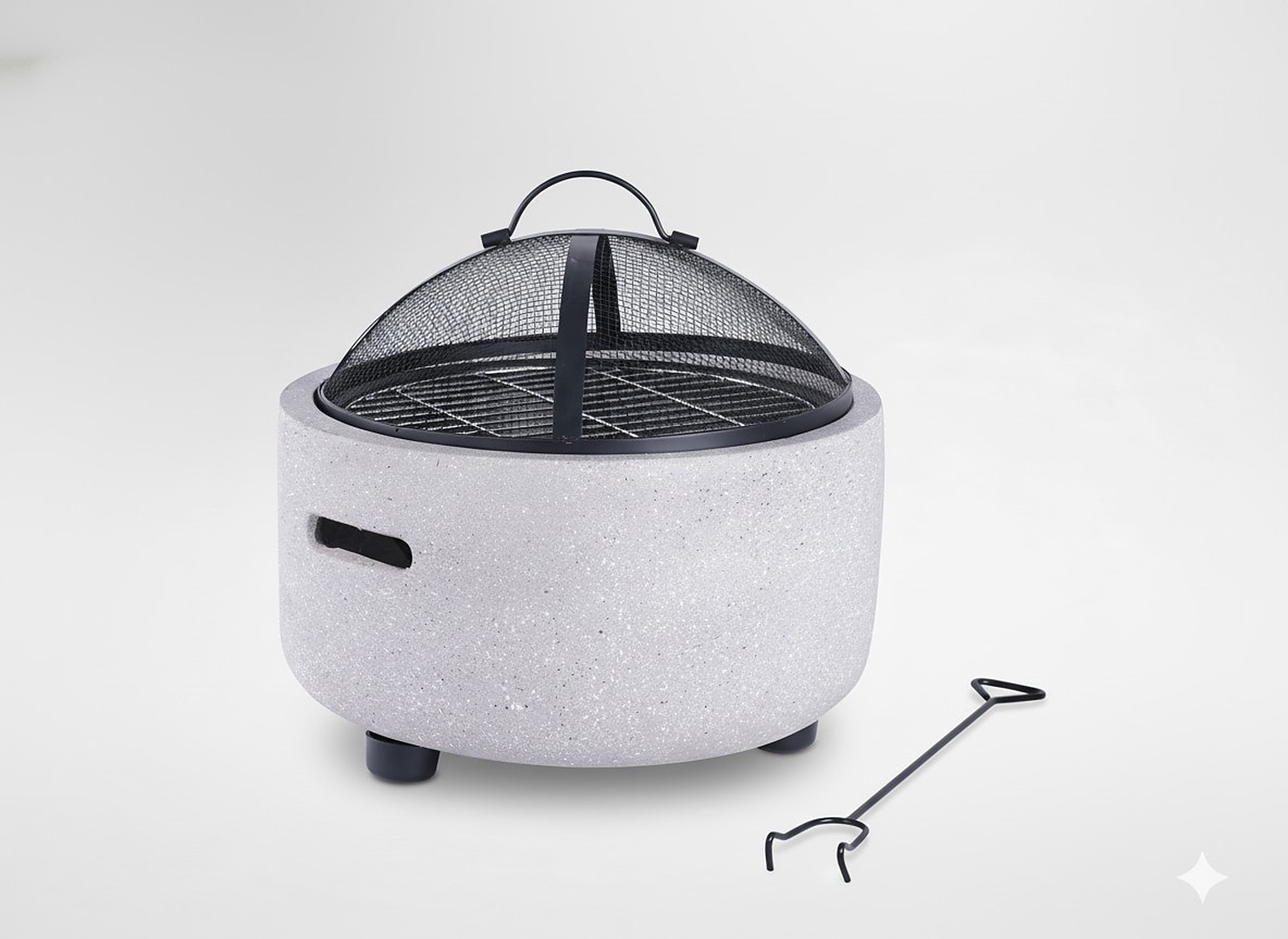 Поєднання елегантності та функціональності – вогнище з решіткою, кришкою та кочергою – готовий набір для будь-якої нагоди 🍽️