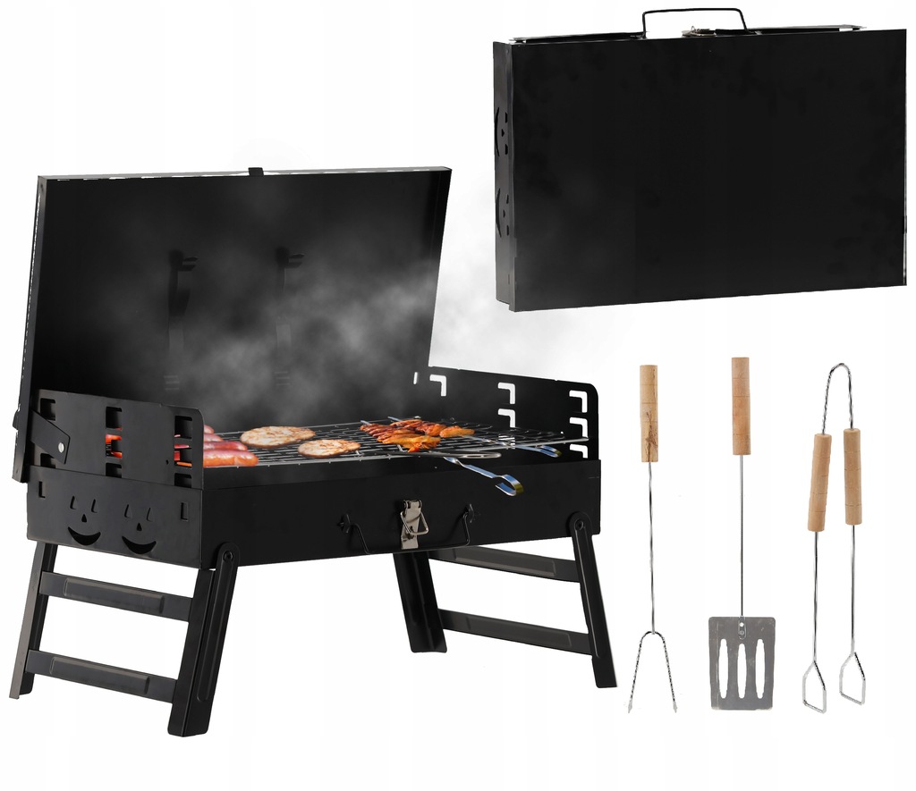 Сезон грилю в розпалі! Не пропустіть найкращу розвагу та незабутні смакові враження. Міцний, компактний переносний гриль у формі валізи ідеально підійде для приготування їжі під час кемпінгу або пікніка. Незвичайною особливістю є те, що гриль допоможе вам організувати трапезу в будь-якому місці. Чаша для вогнища міцна і її легко чистити після закінчення грилювання. Вона має невеликі розміри і може складатися, завдяки чому поміститься в багажник автомобіля.