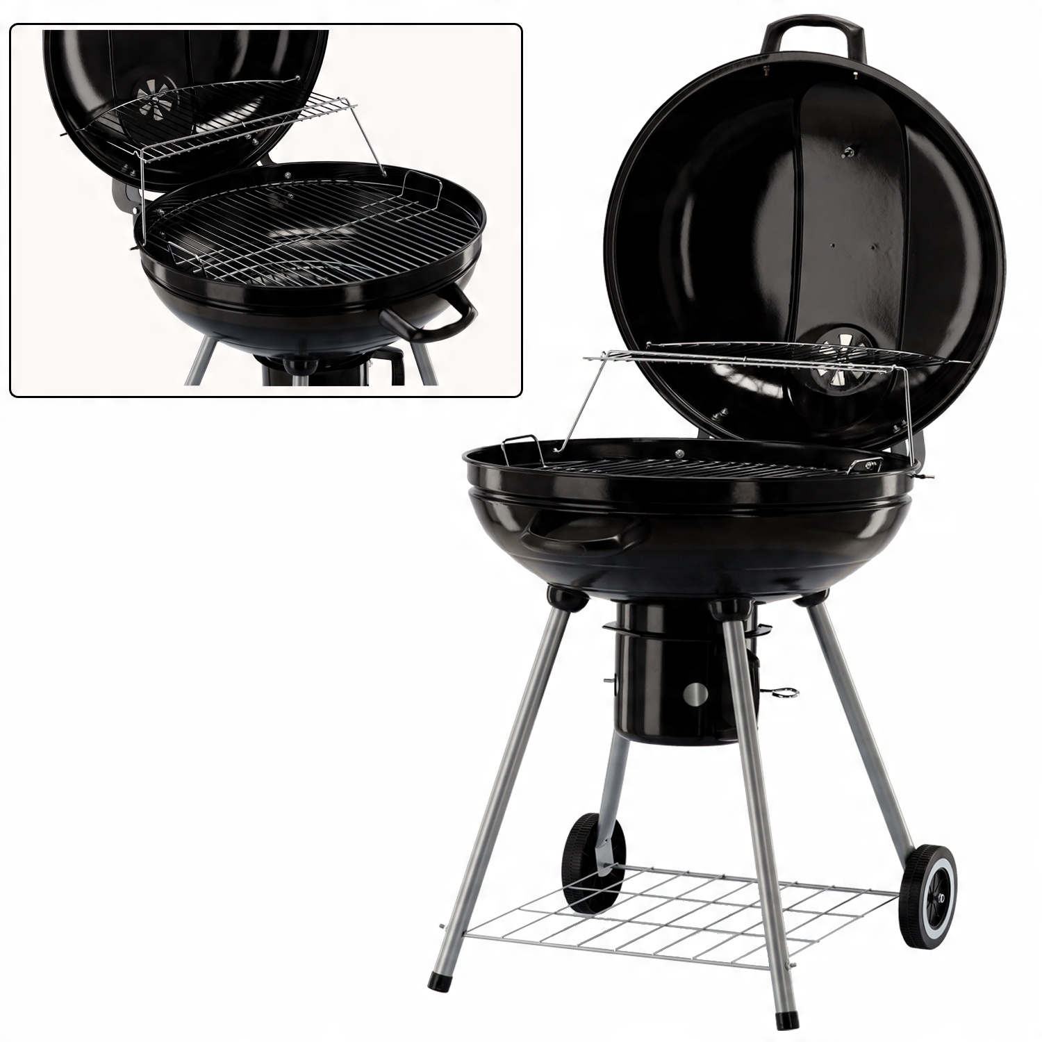 Гриль оснащений двома колесами, виготовленими з міцних матеріалів. Вони дозволяють безпечно встановити його в будь-якому місці саду.