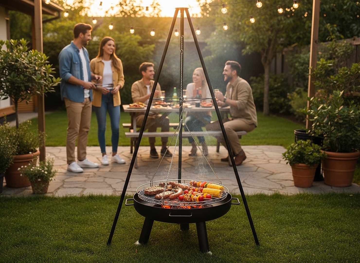 Розпаліть вогонь веселощів і насолоджуйтесь грилем на новому рівні! Цей підвісний гриль на тринозі — це не тільки функціональність, але й стиль, який привертає увагу під час кожної зустрічі в саду або на ділянці. ⛺